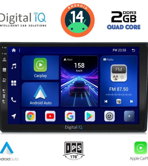 FAST LOADING 8sec" font_container="tag:h6|text_align:center" custom_heading_font_weight="600"][/vc_column][vc_column width="1/5"][vc_single_image source="external_link" external_img_size="170x170" alignment="center" css_animation="slideInDown" css="" custom_src="https://digitaliq.gr/wp-content/uploads/2024/10/icon_carplay_android-auto_certified_170.png"][vc_custom_heading text="LICENSED WIRELESS APPLE CARPLAY & ANDROID AUTO" font_container="tag:h6|text_align:center" custom_heading_font_weight="600"][/vc_column][vc_column width="1/5"][vc_single_image source="external_link" external_img_size="170x170" alignment="center" css_animation="slideInDown" custom_src="https://digitaliq.gr/wp-content/uploads/2018/10/eq_icon.png"][vc_custom_heading text="64 BAND EQUALIZER" font_container="tag:h6|text_align:center" custom_heading_font_weight="600"][/vc_column][vc_column width="1/5"][vc_single_image source="external_link" external_img_size="170x170" alignment="center" css_animation="slideInDown" custom_src="https://digitaliq.gr/wp-content/uploads/2018/10/rear_cam_icon.png"][vc_custom_heading text="FRONT & REAR CAMERA SUPPORT" font_container="tag:h6|text_align:center" custom_heading_font_weight="600"][/vc_column][/vc_row][vc_row][vc_column][vc_separator][/vc_column][/vc_row][vc_row][vc_column width="1/2" margin_right="40px" padding_right="40px"][vc_row_inner][vc_column_inner width="1/4" padding_top="20px"][vc_single_image source="external_link" external_img_size="100x61" alignment="center" css_animation="zoomIn" custom_src="https://digitaliq.gr/wp-content/uploads/2018/10/9inch-capacitive-touchscreen.jpg"][/vc_column_inner][vc_column_inner width="3/4"][vc_custom_heading text="9 inches" font_container="tag:h5|text_align:left" custom_heading_font_weight="600"][vc_custom_heading text="QLED capacitive touchscreen" font_container="tag:h6|text_align:left" custom_heading_font_weight="500"][vc_column_text]Eυκρινής οθόνη αφής, υψηλής ανάλυσης 1024x600 pixels, τεχνολογίας QLED για μεγαλύτερη φωτεινότητα και πιο ζωντανά χρώματα.[/vc_column_text][/vc_column_inner][/vc_row_inner][/vc_column][vc_column width="1/2"][vc_row_inner][vc_column_inner width="1/4" padding_top="20px"][vc_single_image source="external_link" external_img_size="100x61" alignment="center" css_animation="zoomIn" custom_src="https://digitaliq.gr/wp-content/uploads/2021/11/13-band_graphical_eq.jpg"][/vc_column_inner][vc_column_inner width="3/4"][vc_custom_heading text="4x50 WATT" font_container="tag:h5|text_align:left" custom_heading_font_weight="600"][vc_custom_heading text="EQUALIZER with 64 BANDS" font_container="tag:h6|text_align:left" custom_heading_font_weight="500"][vc_column_text]Δυνατός και πλούσιος ήχος με δυνατότητα ρυθμίσεων μέσω του equalizer 16 περιοχών![/vc_column_text][/vc_column_inner][/vc_row_inner][/vc_column][/vc_row][vc_row][vc_column width="1/2"][vc_row_inner][vc_column_inner width="1/4" padding_top="20px"][vc_single_image source="external_link" external_img_size="100x100" alignment="center" css_animation="zoomIn" css="" custom_src="https://digitaliq.gr/wp-content/uploads/2024/10/Apple_CarPlay_Logo_certified_115.jpg"][/vc_column_inner][vc_column_inner width="3/4"][vc_custom_heading text="WIRELESS APPLE CARPLAY" font_container="tag:h5|text_align:left" custom_heading_font_weight="600"][vc_custom_heading text="Licensed & Certified Apple CarPlay" font_container="tag:h6|text_align:left" custom_heading_font_weight="500"][vc_column_text]Το Apple CarPlay & το Android Auto προσφέρει στους χρήστες iPhone® & Android συσκευών έναν απίστευτα διαισθητικό τρόπο να πραγματοποιούν κλήσεις, να χρησιμοποιούν τους Χάρτες, να ακούν μουσική και να έχουν πρόσβαση σε μηνύματα με μια λέξη ή ένα άγγιγμα.