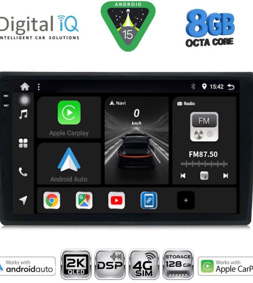 Το Apple CarPlay απαιτεί iPhone 5 ή νεότερο με την πιο πρόσφατη έκδοση του iOS.[/vc_column_text][/vc_column_inner][/vc_row_inner][/vc_column][vc_column width="1/2"][vc_row_inner][vc_column_inner width="1/4" padding_top="20px"][vc_single_image source="external_link" external_img_size="115x32" alignment="center" css_animation="zoomIn" custom_src="https://digitaliq.gr/wp-content/uploads/2024/10/Android_auto-Logo_certified_115.jpg"][/vc_column_inner][vc_column_inner width="3/4"][vc_custom_heading text="WIRELESS ANDROID AUTO" font_container="tag:h5|text_align:left" custom_heading_font_weight="600"][vc_custom_heading text="Licensed & Certified Android Auto" font_container="tag:h6|text_align:left" custom_heading_font_weight="500"][vc_column_text]Επεκτείνει την πλατφόρμα Android στο αυτοκίνητο με τρόπο που έχει σχεδιαστεί ειδικά για την οδήγηση και σας φέρνει αυτόματα χρήσιμες πληροφορίες και τις οργανώνει σε απλές κάρτες που εμφανίζονται ακριβώς όταν τις χρειάζονται. Έχει σχεδιαστεί για να ελαχιστοποιεί την απόσπαση της προσοχής, ώστε να μπορείτε να παραμένετε συγκεντρωμένοι στο δρόμο μπροστά σας.