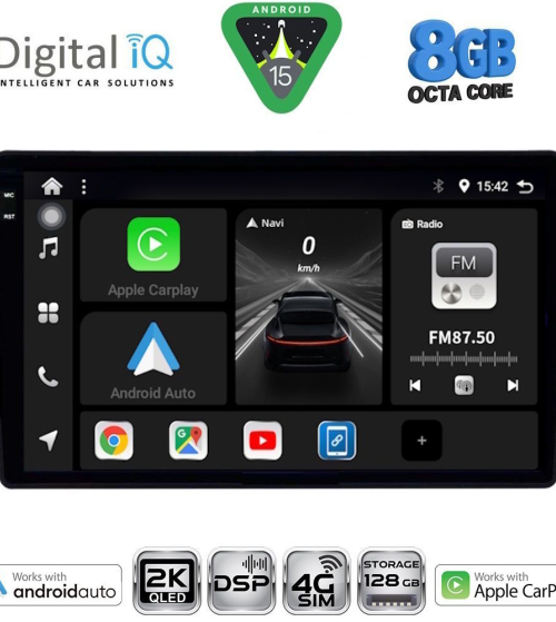 Το Apple CarPlay απαιτεί iPhone 5 ή νεότερο με την πιο πρόσφατη έκδοση του iOS.[/vc_column_text][/vc_column_inner][/vc_row_inner][/vc_column][vc_column width="1/2"][vc_row_inner][vc_column_inner width="1/4" padding_top="20px"][vc_single_image source="external_link" external_img_size="115x32" alignment="center" css_animation="zoomIn" custom_src="https://digitaliq.gr/wp-content/uploads/2024/10/Android_auto-Logo_certified_115.jpg"][/vc_column_inner][vc_column_inner width="3/4"][vc_custom_heading text="WIRELESS ANDROID AUTO" font_container="tag:h5|text_align:left" custom_heading_font_weight="600"][vc_custom_heading text="Licensed & Certified Android Auto" font_container="tag:h6|text_align:left" custom_heading_font_weight="500"][vc_column_text]Επεκτείνει την πλατφόρμα Android στο αυτοκίνητο με τρόπο που έχει σχεδιαστεί ειδικά για την οδήγηση και σας φέρνει αυτόματα χρήσιμες πληροφορίες και τις οργανώνει σε απλές κάρτες που εμφανίζονται ακριβώς όταν τις χρειάζονται. Έχει σχεδιαστεί για να ελαχιστοποιεί την απόσπαση της προσοχής, ώστε να μπορείτε να παραμένετε συγκεντρωμένοι στο δρόμο μπροστά σας.