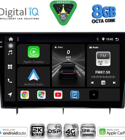 Το Apple CarPlay απαιτεί iPhone 5 ή νεότερο με την πιο πρόσφατη έκδοση του iOS.[/vc_column_text][/vc_column_inner][/vc_row_inner][/vc_column][vc_column width="1/2"][vc_row_inner][vc_column_inner width="1/4" padding_top="20px"][vc_single_image source="external_link" external_img_size="115x32" alignment="center" css_animation="zoomIn" custom_src="https://digitaliq.gr/wp-content/uploads/2024/10/Android_auto-Logo_certified_115.jpg"][/vc_column_inner][vc_column_inner width="3/4"][vc_custom_heading text="WIRELESS ANDROID AUTO" font_container="tag:h5|text_align:left" custom_heading_font_weight="600"][vc_custom_heading text="Licensed & Certified Android Auto" font_container="tag:h6|text_align:left" custom_heading_font_weight="500"][vc_column_text]Επεκτείνει την πλατφόρμα Android στο αυτοκίνητο με τρόπο που έχει σχεδιαστεί ειδικά για την οδήγηση και σας φέρνει αυτόματα χρήσιμες πληροφορίες και τις οργανώνει σε απλές κάρτες που εμφανίζονται ακριβώς όταν τις χρειάζονται. Έχει σχεδιαστεί για να ελαχιστοποιεί την απόσπαση της προσοχής, ώστε να μπορείτε να παραμένετε συγκεντρωμένοι στο δρόμο μπροστά σας.