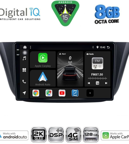 Το Apple CarPlay απαιτεί iPhone 5 ή νεότερο με την πιο πρόσφατη έκδοση του iOS.[/vc_column_text][/vc_column_inner][/vc_row_inner][/vc_column][vc_column width="1/2"][vc_row_inner][vc_column_inner width="1/4" padding_top="20px"][vc_single_image source="external_link" external_img_size="115x32" alignment="center" css_animation="zoomIn" custom_src="https://digitaliq.gr/wp-content/uploads/2024/10/Android_auto-Logo_certified_115.jpg"][/vc_column_inner][vc_column_inner width="3/4"][vc_custom_heading text="WIRELESS ANDROID AUTO" font_container="tag:h5|text_align:left" custom_heading_font_weight="600"][vc_custom_heading text="Licensed & Certified Android Auto" font_container="tag:h6|text_align:left" custom_heading_font_weight="500"][vc_column_text]Επεκτείνει την πλατφόρμα Android στο αυτοκίνητο με τρόπο που έχει σχεδιαστεί ειδικά για την οδήγηση και σας φέρνει αυτόματα χρήσιμες πληροφορίες και τις οργανώνει σε απλές κάρτες που εμφανίζονται ακριβώς όταν τις χρειάζονται. Έχει σχεδιαστεί για να ελαχιστοποιεί την απόσπαση της προσοχής, ώστε να μπορείτε να παραμένετε συγκεντρωμένοι στο δρόμο μπροστά σας.