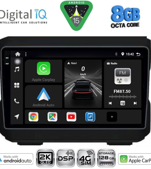 Το Apple CarPlay απαιτεί iPhone 5 ή νεότερο με την πιο πρόσφατη έκδοση του iOS.[/vc_column_text][/vc_column_inner][/vc_row_inner][/vc_column][vc_column width="1/2"][vc_row_inner][vc_column_inner width="1/4" padding_top="20px"][vc_single_image source="external_link" external_img_size="115x32" alignment="center" css_animation="zoomIn" custom_src="https://digitaliq.gr/wp-content/uploads/2024/10/Android_auto-Logo_certified_115.jpg"][/vc_column_inner][vc_column_inner width="3/4"][vc_custom_heading text="WIRELESS ANDROID AUTO" font_container="tag:h5|text_align:left" custom_heading_font_weight="600"][vc_custom_heading text="Licensed & Certified Android Auto" font_container="tag:h6|text_align:left" custom_heading_font_weight="500"][vc_column_text]Επεκτείνει την πλατφόρμα Android στο αυτοκίνητο με τρόπο που έχει σχεδιαστεί ειδικά για την οδήγηση και σας φέρνει αυτόματα χρήσιμες πληροφορίες και τις οργανώνει σε απλές κάρτες που εμφανίζονται ακριβώς όταν τις χρειάζονται. Έχει σχεδιαστεί για να ελαχιστοποιεί την απόσπαση της προσοχής, ώστε να μπορείτε να παραμένετε συγκεντρωμένοι στο δρόμο μπροστά σας.