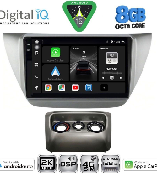 Το Apple CarPlay απαιτεί iPhone 5 ή νεότερο με την πιο πρόσφατη έκδοση του iOS.[/vc_column_text][/vc_column_inner][/vc_row_inner][/vc_column][vc_column width="1/2"][vc_row_inner][vc_column_inner width="1/4" padding_top="20px"][vc_single_image source="external_link" external_img_size="115x32" alignment="center" css_animation="zoomIn" custom_src="https://digitaliq.gr/wp-content/uploads/2024/10/Android_auto-Logo_certified_115.jpg"][/vc_column_inner][vc_column_inner width="3/4"][vc_custom_heading text="WIRELESS ANDROID AUTO" font_container="tag:h5|text_align:left" custom_heading_font_weight="600"][vc_custom_heading text="Licensed & Certified Android Auto" font_container="tag:h6|text_align:left" custom_heading_font_weight="500"][vc_column_text]Επεκτείνει την πλατφόρμα Android στο αυτοκίνητο με τρόπο που έχει σχεδιαστεί ειδικά για την οδήγηση και σας φέρνει αυτόματα χρήσιμες πληροφορίες και τις οργανώνει σε απλές κάρτες που εμφανίζονται ακριβώς όταν τις χρειάζονται. Έχει σχεδιαστεί για να ελαχιστοποιεί την απόσπαση της προσοχής, ώστε να μπορείτε να παραμένετε συγκεντρωμένοι στο δρόμο μπροστά σας.