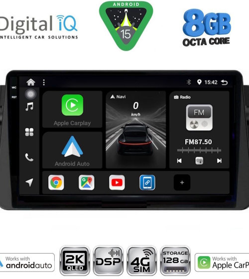 Το Apple CarPlay απαιτεί iPhone 5 ή νεότερο με την πιο πρόσφατη έκδοση του iOS.[/vc_column_text][/vc_column_inner][/vc_row_inner][/vc_column][vc_column width="1/2"][vc_row_inner][vc_column_inner width="1/4" padding_top="20px"][vc_single_image source="external_link" external_img_size="115x32" alignment="center" css_animation="zoomIn" custom_src="https://digitaliq.gr/wp-content/uploads/2024/10/Android_auto-Logo_certified_115.jpg"][/vc_column_inner][vc_column_inner width="3/4"][vc_custom_heading text="WIRELESS ANDROID AUTO" font_container="tag:h5|text_align:left" custom_heading_font_weight="600"][vc_custom_heading text="Licensed & Certified Android Auto" font_container="tag:h6|text_align:left" custom_heading_font_weight="500"][vc_column_text]Επεκτείνει την πλατφόρμα Android στο αυτοκίνητο με τρόπο που έχει σχεδιαστεί ειδικά για την οδήγηση και σας φέρνει αυτόματα χρήσιμες πληροφορίες και τις οργανώνει σε απλές κάρτες που εμφανίζονται ακριβώς όταν τις χρειάζονται. Έχει σχεδιαστεί για να ελαχιστοποιεί την απόσπαση της προσοχής, ώστε να μπορείτε να παραμένετε συγκεντρωμένοι στο δρόμο μπροστά σας.