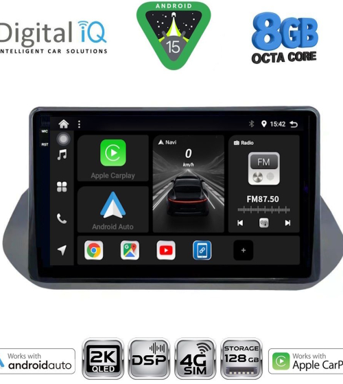 Το Apple CarPlay απαιτεί iPhone 5 ή νεότερο με την πιο πρόσφατη έκδοση του iOS.[/vc_column_text][/vc_column_inner][/vc_row_inner][/vc_column][vc_column width="1/2"][vc_row_inner][vc_column_inner width="1/4" padding_top="20px"][vc_single_image source="external_link" external_img_size="115x32" alignment="center" css_animation="zoomIn" custom_src="https://digitaliq.gr/wp-content/uploads/2024/10/Android_auto-Logo_certified_115.jpg"][/vc_column_inner][vc_column_inner width="3/4"][vc_custom_heading text="WIRELESS ANDROID AUTO" font_container="tag:h5|text_align:left" custom_heading_font_weight="600"][vc_custom_heading text="Licensed & Certified Android Auto" font_container="tag:h6|text_align:left" custom_heading_font_weight="500"][vc_column_text]Επεκτείνει την πλατφόρμα Android στο αυτοκίνητο με τρόπο που έχει σχεδιαστεί ειδικά για την οδήγηση και σας φέρνει αυτόματα χρήσιμες πληροφορίες και τις οργανώνει σε απλές κάρτες που εμφανίζονται ακριβώς όταν τις χρειάζονται. Έχει σχεδιαστεί για να ελαχιστοποιεί την απόσπαση της προσοχής, ώστε να μπορείτε να παραμένετε συγκεντρωμένοι στο δρόμο μπροστά σας.