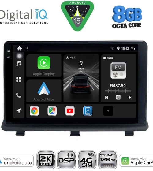 Το Apple CarPlay απαιτεί iPhone 5 ή νεότερο με την πιο πρόσφατη έκδοση του iOS.[/vc_column_text][/vc_column_inner][/vc_row_inner][/vc_column][vc_column width="1/2"][vc_row_inner][vc_column_inner width="1/4" padding_top="20px"][vc_single_image source="external_link" external_img_size="115x32" alignment="center" css_animation="zoomIn" custom_src="https://digitaliq.gr/wp-content/uploads/2024/10/Android_auto-Logo_certified_115.jpg"][/vc_column_inner][vc_column_inner width="3/4"][vc_custom_heading text="WIRELESS ANDROID AUTO" font_container="tag:h5|text_align:left" custom_heading_font_weight="600"][vc_custom_heading text="Licensed & Certified Android Auto" font_container="tag:h6|text_align:left" custom_heading_font_weight="500"][vc_column_text]Επεκτείνει την πλατφόρμα Android στο αυτοκίνητο με τρόπο που έχει σχεδιαστεί ειδικά για την οδήγηση και σας φέρνει αυτόματα χρήσιμες πληροφορίες και τις οργανώνει σε απλές κάρτες που εμφανίζονται ακριβώς όταν τις χρειάζονται. Έχει σχεδιαστεί για να ελαχιστοποιεί την απόσπαση της προσοχής, ώστε να μπορείτε να παραμένετε συγκεντρωμένοι στο δρόμο μπροστά σας.