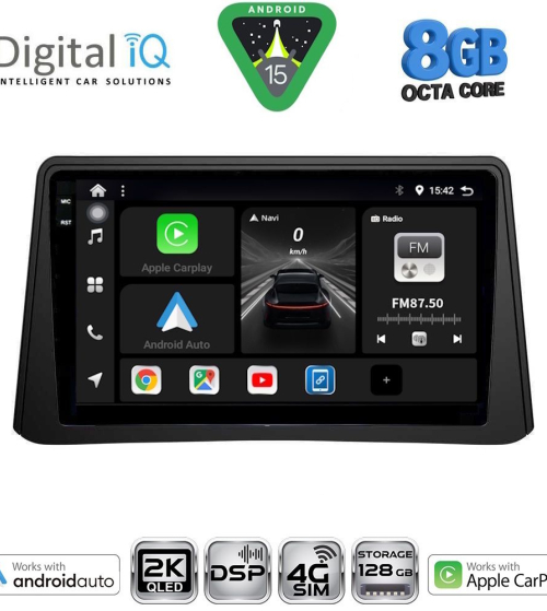 Το Apple CarPlay απαιτεί iPhone 5 ή νεότερο με την πιο πρόσφατη έκδοση του iOS.[/vc_column_text][/vc_column_inner][/vc_row_inner][/vc_column][vc_column width="1/2"][vc_row_inner][vc_column_inner width="1/4" padding_top="20px"][vc_single_image source="external_link" external_img_size="115x32" alignment="center" css_animation="zoomIn" custom_src="https://digitaliq.gr/wp-content/uploads/2024/10/Android_auto-Logo_certified_115.jpg"][/vc_column_inner][vc_column_inner width="3/4"][vc_custom_heading text="WIRELESS ANDROID AUTO" font_container="tag:h5|text_align:left" custom_heading_font_weight="600"][vc_custom_heading text="Licensed & Certified Android Auto" font_container="tag:h6|text_align:left" custom_heading_font_weight="500"][vc_column_text]Επεκτείνει την πλατφόρμα Android στο αυτοκίνητο με τρόπο που έχει σχεδιαστεί ειδικά για την οδήγηση και σας φέρνει αυτόματα χρήσιμες πληροφορίες και τις οργανώνει σε απλές κάρτες που εμφανίζονται ακριβώς όταν τις χρειάζονται. Έχει σχεδιαστεί για να ελαχιστοποιεί την απόσπαση της προσοχής, ώστε να μπορείτε να παραμένετε συγκεντρωμένοι στο δρόμο μπροστά σας.