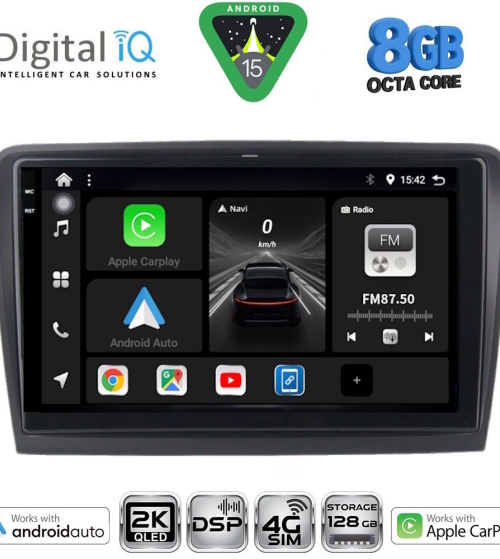 Το Apple CarPlay απαιτεί iPhone 5 ή νεότερο με την πιο πρόσφατη έκδοση του iOS.[/vc_column_text][/vc_column_inner][/vc_row_inner][/vc_column][vc_column width="1/2"][vc_row_inner][vc_column_inner width="1/4" padding_top="20px"][vc_single_image source="external_link" external_img_size="115x32" alignment="center" css_animation="zoomIn" custom_src="https://digitaliq.gr/wp-content/uploads/2024/10/Android_auto-Logo_certified_115.jpg"][/vc_column_inner][vc_column_inner width="3/4"][vc_custom_heading text="WIRELESS ANDROID AUTO" font_container="tag:h5|text_align:left" custom_heading_font_weight="600"][vc_custom_heading text="Licensed & Certified Android Auto" font_container="tag:h6|text_align:left" custom_heading_font_weight="500"][vc_column_text]Επεκτείνει την πλατφόρμα Android στο αυτοκίνητο με τρόπο που έχει σχεδιαστεί ειδικά για την οδήγηση και σας φέρνει αυτόματα χρήσιμες πληροφορίες και τις οργανώνει σε απλές κάρτες που εμφανίζονται ακριβώς όταν τις χρειάζονται. Έχει σχεδιαστεί για να ελαχιστοποιεί την απόσπαση της προσοχής, ώστε να μπορείτε να παραμένετε συγκεντρωμένοι στο δρόμο μπροστά σας.