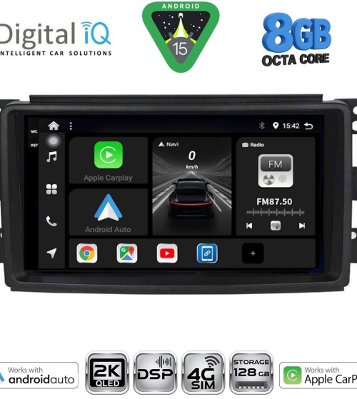 Το Apple CarPlay απαιτεί iPhone 5 ή νεότερο με την πιο πρόσφατη έκδοση του iOS.[/vc_column_text][/vc_column_inner][/vc_row_inner][/vc_column][vc_column width="1/2"][vc_row_inner][vc_column_inner width="1/4" padding_top="20px"][vc_single_image source="external_link" external_img_size="115x32" alignment="center" css_animation="zoomIn" custom_src="https://digitaliq.gr/wp-content/uploads/2024/10/Android_auto-Logo_certified_115.jpg"][/vc_column_inner][vc_column_inner width="3/4"][vc_custom_heading text="WIRELESS ANDROID AUTO" font_container="tag:h5|text_align:left" custom_heading_font_weight="600"][vc_custom_heading text="Licensed & Certified Android Auto" font_container="tag:h6|text_align:left" custom_heading_font_weight="500"][vc_column_text]Επεκτείνει την πλατφόρμα Android στο αυτοκίνητο με τρόπο που έχει σχεδιαστεί ειδικά για την οδήγηση και σας φέρνει αυτόματα χρήσιμες πληροφορίες και τις οργανώνει σε απλές κάρτες που εμφανίζονται ακριβώς όταν τις χρειάζονται. Έχει σχεδιαστεί για να ελαχιστοποιεί την απόσπαση της προσοχής, ώστε να μπορείτε να παραμένετε συγκεντρωμένοι στο δρόμο μπροστά σας.