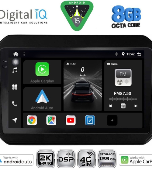 Το Apple CarPlay απαιτεί iPhone 5 ή νεότερο με την πιο πρόσφατη έκδοση του iOS.[/vc_column_text][/vc_column_inner][/vc_row_inner][/vc_column][vc_column width="1/2"][vc_row_inner][vc_column_inner width="1/4" padding_top="20px"][vc_single_image source="external_link" external_img_size="115x32" alignment="center" css_animation="zoomIn" custom_src="https://digitaliq.gr/wp-content/uploads/2024/10/Android_auto-Logo_certified_115.jpg"][/vc_column_inner][vc_column_inner width="3/4"][vc_custom_heading text="WIRELESS ANDROID AUTO" font_container="tag:h5|text_align:left" custom_heading_font_weight="600"][vc_custom_heading text="Licensed & Certified Android Auto" font_container="tag:h6|text_align:left" custom_heading_font_weight="500"][vc_column_text]Επεκτείνει την πλατφόρμα Android στο αυτοκίνητο με τρόπο που έχει σχεδιαστεί ειδικά για την οδήγηση και σας φέρνει αυτόματα χρήσιμες πληροφορίες και τις οργανώνει σε απλές κάρτες που εμφανίζονται ακριβώς όταν τις χρειάζονται. Έχει σχεδιαστεί για να ελαχιστοποιεί την απόσπαση της προσοχής, ώστε να μπορείτε να παραμένετε συγκεντρωμένοι στο δρόμο μπροστά σας.