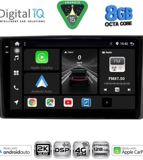 Το Apple CarPlay απαιτεί iPhone 5 ή νεότερο με την πιο πρόσφατη έκδοση του iOS.[/vc_column_text][/vc_column_inner][/vc_row_inner][/vc_column][vc_column width="1/2"][vc_row_inner][vc_column_inner width="1/4" padding_top="20px"][vc_single_image source="external_link" external_img_size="115x32" alignment="center" css_animation="zoomIn" custom_src="https://digitaliq.gr/wp-content/uploads/2024/10/Android_auto-Logo_certified_115.jpg"][/vc_column_inner][vc_column_inner width="3/4"][vc_custom_heading text="WIRELESS ANDROID AUTO" font_container="tag:h5|text_align:left" custom_heading_font_weight="600"][vc_custom_heading text="Licensed & Certified Android Auto" font_container="tag:h6|text_align:left" custom_heading_font_weight="500"][vc_column_text]Επεκτείνει την πλατφόρμα Android στο αυτοκίνητο με τρόπο που έχει σχεδιαστεί ειδικά για την οδήγηση και σας φέρνει αυτόματα χρήσιμες πληροφορίες και τις οργανώνει σε απλές κάρτες που εμφανίζονται ακριβώς όταν τις χρειάζονται. Έχει σχεδιαστεί για να ελαχιστοποιεί την απόσπαση της προσοχής, ώστε να μπορείτε να παραμένετε συγκεντρωμένοι στο δρόμο μπροστά σας.