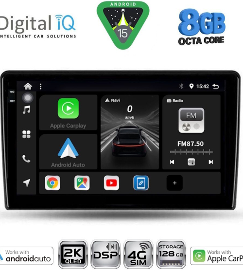 64 BAND EQUALIZER" font_container="tag:h6|text_align:center" custom_heading_font_weight="600"][/vc_column][vc_column width="1/5"][vc_single_image source="external_link" external_img_size="170x170" alignment="center" css_animation="slideInDown" custom_src="https://digitaliq.gr/wp-content/uploads/2024/10/icon_carplay_android-auto_certified_170.png"][vc_custom_heading text="LICENSED WIRELESS APPLE CARPLAY & ANDROID AUTO" font_container="tag:h6|text_align:center" custom_heading_font_weight="600"][/vc_column][vc_column width="1/5"][vc_single_image source="external_link" external_img_size="170x170" alignment="center" css_animation="slideInDown" custom_src="https://digitaliq.gr/wp-content/uploads/2018/10/icon_360-170x170.png"][vc_custom_heading text="FRONT - REAR & 360° CAMERA SUPPORT" font_container="tag:h6|text_align:center" custom_heading_font_weight="600"][/vc_column][/vc_row][vc_row][vc_column align="center" margin_top="10px" margin_bottom="10px"][vc_separator][/vc_column][/vc_row][vc_row][vc_column width="1/2" margin_right="40px" padding_right="40px"][vc_row_inner][vc_column_inner width="1/4" padding_top="20px"][vc_single_image source="external_link" external_img_size="100x61" alignment="center" css_animation="zoomIn" custom_src="https://digitaliq.gr/wp-content/uploads/2021/11/9inch-capacitive-touchscreen.jpg"][/vc_column_inner][vc_column_inner width="3/4"][vc_custom_heading text="TABLET 9 inches" font_container="tag:h5|text_align:left" custom_heading_font_weight="600"][vc_custom_heading text="QLED 2K Touchscreen" font_container="tag:h6|text_align:left" custom_heading_font_weight="500"][vc_column_text]Μεγάλη ευκρινής οθόνη αφής, τεχνολογίας QLED για μεγαλύτερη φωτεινότητα και πιο ζωντανά χρώματα, υπερυψηλής ανάλυσης 2Κ 2000x1200pixels.[/vc_column_text][/vc_column_inner][/vc_row_inner][/vc_column][vc_column width="1/2"][vc_row_inner][vc_column_inner width="1/4" padding_top="20px"][vc_single_image source="external_link" external_img_size="100x61" alignment="center" css_animation="zoomIn" custom_src="https://digitaliq.gr/wp-content/uploads/2021/11/13-band_graphical_eq.jpg"][/vc_column_inner][vc_column_inner width="3/4"][vc_custom_heading text="4x50 WATT" font_container="tag:h5|text_align:left" custom_heading_font_weight="600"][vc_custom_heading text="DSP DTS 4.1 with TIME DELAY – EQUALIZER with 64 BAND" font_container="tag:h6|text_align:left" custom_heading_font_weight="500"][vc_column_text]Δυνατός και καθαρός DSP ήχος με δυνατότητα πολλαπλών ρυθμίσεων μέσω του equalizer 64άρων περιοχών![/vc_column_text][/vc_column_inner][/vc_row_inner][/vc_column][/vc_row][vc_row][vc_column width="1/2" margin_right="40px" padding_right="40px"][vc_row_inner][vc_column_inner width="1/4" padding_top="20px"][vc_single_image source="external_link" external_img_size="115x32" alignment="center" css_animation="zoomIn" custom_src="https://digitaliq.gr/wp-content/uploads/2024/10/Apple_CarPlay_Logo_certified_115.jpg"][/vc_column_inner][vc_column_inner width="3/4"][vc_custom_heading text="WIRELESS APPLE CARPLAY" font_container="tag:h5|text_align:left" custom_heading_font_weight="600"][vc_custom_heading text="Licensed & Certified Apple CarPlay" font_container="tag:h6|text_align:left" custom_heading_font_weight="500"][vc_column_text]Το Apple CarPlay προσφέρει στους χρήστες iPhone® έναν απίστευτα διαισθητικό τρόπο να πραγματοποιούν κλήσεις, να χρησιμοποιούν τους Χάρτες, να ακούν μουσική και να έχουν πρόσβαση σε μηνύματα με μια λέξη ή ένα άγγιγμα.