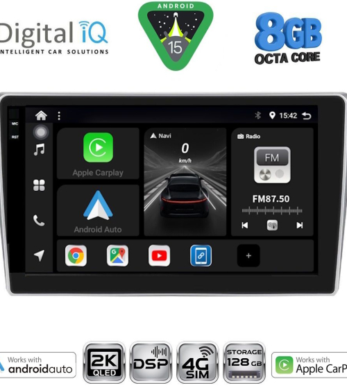 64 BAND EQUALIZER" font_container="tag:h6|text_align:center" custom_heading_font_weight="600"][/vc_column][vc_column width="1/5"][vc_single_image source="external_link" external_img_size="170x170" alignment="center" css_animation="slideInDown" custom_src="https://digitaliq.gr/wp-content/uploads/2024/10/icon_carplay_android-auto_certified_170.png"][vc_custom_heading text="LICENSED WIRELESS APPLE CARPLAY & ANDROID AUTO" font_container="tag:h6|text_align:center" custom_heading_font_weight="600"][/vc_column][vc_column width="1/5"][vc_single_image source="external_link" external_img_size="170x170" alignment="center" css_animation="slideInDown" custom_src="https://digitaliq.gr/wp-content/uploads/2018/10/icon_360-170x170.png"][vc_custom_heading text="FRONT - REAR & 360° CAMERA SUPPORT" font_container="tag:h6|text_align:center" custom_heading_font_weight="600"][/vc_column][/vc_row][vc_row][vc_column align="center" margin_top="10px" margin_bottom="10px"][vc_separator][/vc_column][/vc_row][vc_row][vc_column width="1/2" margin_right="40px" padding_right="40px"][vc_row_inner][vc_column_inner width="1/4" padding_top="20px"][vc_single_image source="external_link" external_img_size="100x61" alignment="center" css_animation="zoomIn" custom_src="https://digitaliq.gr/wp-content/uploads/2021/11/9inch-capacitive-touchscreen.jpg"][/vc_column_inner][vc_column_inner width="3/4"][vc_custom_heading text="TABLET 9 inches" font_container="tag:h5|text_align:left" custom_heading_font_weight="600"][vc_custom_heading text="QLED 2K Touchscreen" font_container="tag:h6|text_align:left" custom_heading_font_weight="500"][vc_column_text]Μεγάλη ευκρινής οθόνη αφής, τεχνολογίας QLED για μεγαλύτερη φωτεινότητα και πιο ζωντανά χρώματα, υπερυψηλής ανάλυσης 2Κ 2000x1200pixels.[/vc_column_text][/vc_column_inner][/vc_row_inner][/vc_column][vc_column width="1/2"][vc_row_inner][vc_column_inner width="1/4" padding_top="20px"][vc_single_image source="external_link" external_img_size="100x61" alignment="center" css_animation="zoomIn" custom_src="https://digitaliq.gr/wp-content/uploads/2021/11/13-band_graphical_eq.jpg"][/vc_column_inner][vc_column_inner width="3/4"][vc_custom_heading text="4x50 WATT" font_container="tag:h5|text_align:left" custom_heading_font_weight="600"][vc_custom_heading text="DSP DTS 4.1 with TIME DELAY – EQUALIZER with 64 BAND" font_container="tag:h6|text_align:left" custom_heading_font_weight="500"][vc_column_text]Δυνατός και καθαρός DSP ήχος με δυνατότητα πολλαπλών ρυθμίσεων μέσω του equalizer 64άρων περιοχών![/vc_column_text][/vc_column_inner][/vc_row_inner][/vc_column][/vc_row][vc_row][vc_column width="1/2" margin_right="40px" padding_right="40px"][vc_row_inner][vc_column_inner width="1/4" padding_top="20px"][vc_single_image source="external_link" external_img_size="115x32" alignment="center" css_animation="zoomIn" custom_src="https://digitaliq.gr/wp-content/uploads/2024/10/Apple_CarPlay_Logo_certified_115.jpg"][/vc_column_inner][vc_column_inner width="3/4"][vc_custom_heading text="WIRELESS APPLE CARPLAY" font_container="tag:h5|text_align:left" custom_heading_font_weight="600"][vc_custom_heading text="Licensed & Certified Apple CarPlay" font_container="tag:h6|text_align:left" custom_heading_font_weight="500"][vc_column_text]Το Apple CarPlay προσφέρει στους χρήστες iPhone® έναν απίστευτα διαισθητικό τρόπο να πραγματοποιούν κλήσεις, να χρησιμοποιούν τους Χάρτες, να ακούν μουσική και να έχουν πρόσβαση σε μηνύματα με μια λέξη ή ένα άγγιγμα.