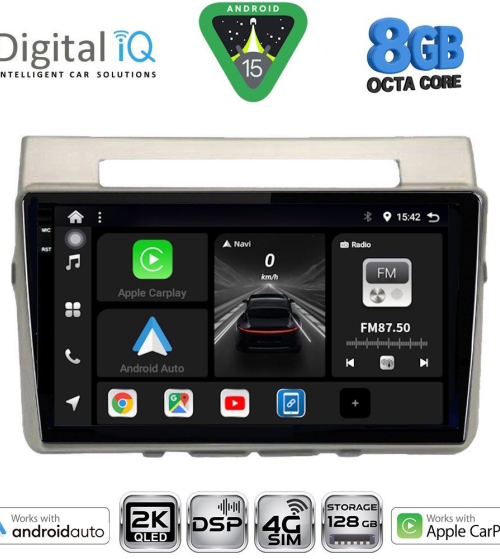 Το Apple CarPlay απαιτεί iPhone 5 ή νεότερο με την πιο πρόσφατη έκδοση του iOS.[/vc_column_text][/vc_column_inner][/vc_row_inner][/vc_column][vc_column width="1/2"][vc_row_inner][vc_column_inner width="1/4" padding_top="20px"][vc_single_image source="external_link" external_img_size="115x32" alignment="center" css_animation="zoomIn" custom_src="https://digitaliq.gr/wp-content/uploads/2024/10/Android_auto-Logo_certified_115.jpg"][/vc_column_inner][vc_column_inner width="3/4"][vc_custom_heading text="WIRELESS ANDROID AUTO" font_container="tag:h5|text_align:left" custom_heading_font_weight="600"][vc_custom_heading text="Licensed & Certified Android Auto" font_container="tag:h6|text_align:left" custom_heading_font_weight="500"][vc_column_text]Επεκτείνει την πλατφόρμα Android στο αυτοκίνητο με τρόπο που έχει σχεδιαστεί ειδικά για την οδήγηση και σας φέρνει αυτόματα χρήσιμες πληροφορίες και τις οργανώνει σε απλές κάρτες που εμφανίζονται ακριβώς όταν τις χρειάζονται. Έχει σχεδιαστεί για να ελαχιστοποιεί την απόσπαση της προσοχής, ώστε να μπορείτε να παραμένετε συγκεντρωμένοι στο δρόμο μπροστά σας.