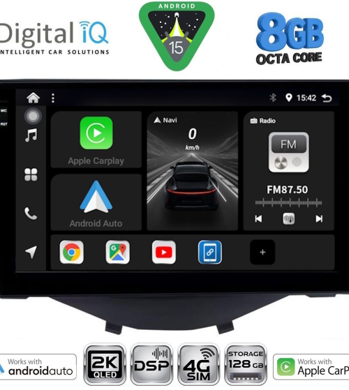 Το Apple CarPlay απαιτεί iPhone 5 ή νεότερο με την πιο πρόσφατη έκδοση του iOS.[/vc_column_text][/vc_column_inner][/vc_row_inner][/vc_column][vc_column width="1/2"][vc_row_inner][vc_column_inner width="1/4" padding_top="20px"][vc_single_image source="external_link" external_img_size="115x32" alignment="center" css_animation="zoomIn" custom_src="https://digitaliq.gr/wp-content/uploads/2024/10/Android_auto-Logo_certified_115.jpg"][/vc_column_inner][vc_column_inner width="3/4"][vc_custom_heading text="WIRELESS ANDROID AUTO" font_container="tag:h5|text_align:left" custom_heading_font_weight="600"][vc_custom_heading text="Licensed & Certified Android Auto" font_container="tag:h6|text_align:left" custom_heading_font_weight="500"][vc_column_text]Επεκτείνει την πλατφόρμα Android στο αυτοκίνητο με τρόπο που έχει σχεδιαστεί ειδικά για την οδήγηση και σας φέρνει αυτόματα χρήσιμες πληροφορίες και τις οργανώνει σε απλές κάρτες που εμφανίζονται ακριβώς όταν τις χρειάζονται. Έχει σχεδιαστεί για να ελαχιστοποιεί την απόσπαση της προσοχής, ώστε να μπορείτε να παραμένετε συγκεντρωμένοι στο δρόμο μπροστά σας.