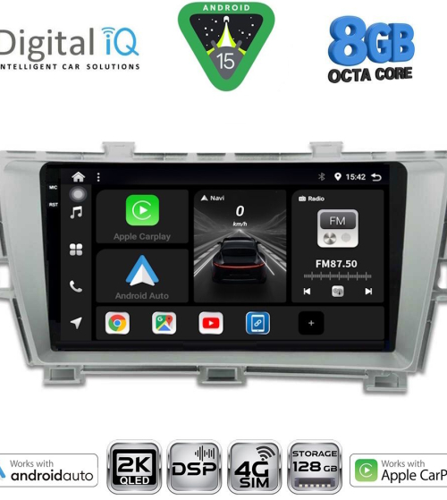 Το Apple CarPlay απαιτεί iPhone 5 ή νεότερο με την πιο πρόσφατη έκδοση του iOS.[/vc_column_text][/vc_column_inner][/vc_row_inner][/vc_column][vc_column width="1/2"][vc_row_inner][vc_column_inner width="1/4" padding_top="20px"][vc_single_image source="external_link" external_img_size="115x32" alignment="center" css_animation="zoomIn" custom_src="https://digitaliq.gr/wp-content/uploads/2024/10/Android_auto-Logo_certified_115.jpg"][/vc_column_inner][vc_column_inner width="3/4"][vc_custom_heading text="WIRELESS ANDROID AUTO" font_container="tag:h5|text_align:left" custom_heading_font_weight="600"][vc_custom_heading text="Licensed & Certified Android Auto" font_container="tag:h6|text_align:left" custom_heading_font_weight="500"][vc_column_text]Επεκτείνει την πλατφόρμα Android στο αυτοκίνητο με τρόπο που έχει σχεδιαστεί ειδικά για την οδήγηση και σας φέρνει αυτόματα χρήσιμες πληροφορίες και τις οργανώνει σε απλές κάρτες που εμφανίζονται ακριβώς όταν τις χρειάζονται. Έχει σχεδιαστεί για να ελαχιστοποιεί την απόσπαση της προσοχής, ώστε να μπορείτε να παραμένετε συγκεντρωμένοι στο δρόμο μπροστά σας.