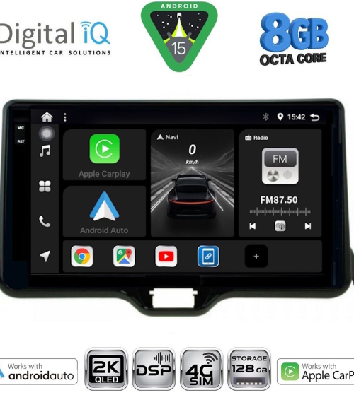 Το Apple CarPlay απαιτεί iPhone 5 ή νεότερο με την πιο πρόσφατη έκδοση του iOS.[/vc_column_text][/vc_column_inner][/vc_row_inner][/vc_column][vc_column width="1/2"][vc_row_inner][vc_column_inner width="1/4" padding_top="20px"][vc_single_image source="external_link" external_img_size="115x32" alignment="center" css_animation="zoomIn" custom_src="https://digitaliq.gr/wp-content/uploads/2024/10/Android_auto-Logo_certified_115.jpg"][/vc_column_inner][vc_column_inner width="3/4"][vc_custom_heading text="WIRELESS ANDROID AUTO" font_container="tag:h5|text_align:left" custom_heading_font_weight="600"][vc_custom_heading text="Licensed & Certified Android Auto" font_container="tag:h6|text_align:left" custom_heading_font_weight="500"][vc_column_text]Επεκτείνει την πλατφόρμα Android στο αυτοκίνητο με τρόπο που έχει σχεδιαστεί ειδικά για την οδήγηση και σας φέρνει αυτόματα χρήσιμες πληροφορίες και τις οργανώνει σε απλές κάρτες που εμφανίζονται ακριβώς όταν τις χρειάζονται. Έχει σχεδιαστεί για να ελαχιστοποιεί την απόσπαση της προσοχής, ώστε να μπορείτε να παραμένετε συγκεντρωμένοι στο δρόμο μπροστά σας.