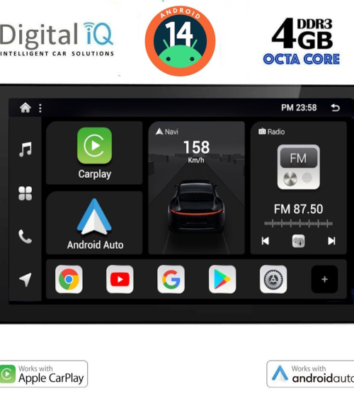 Το Apple CarPlay απαιτεί iPhone 5 ή νεότερο με την πιο πρόσφατη έκδοση του iOS.[/vc_column_text][/vc_column_inner][/vc_row_inner][/vc_column][vc_column width="1/2"][vc_row_inner][vc_column_inner width="1/4" padding_top="20px"][vc_single_image source="external_link" external_img_size="115x32" alignment="center" css_animation="zoomIn" custom_src="https://digitaliq.gr/wp-content/uploads/2024/10/Android_auto-Logo_certified_115.jpg"][/vc_column_inner][vc_column_inner width="3/4"][vc_custom_heading text="WIRELESS ANDROID AUTO" font_container="tag:h5|text_align:left" custom_heading_font_weight="600"][vc_column_text]Επεκτείνει την πλατφόρμα Android στο αυτοκίνητο με τρόπο που έχει σχεδιαστεί ειδικά για την οδήγηση και σας φέρνει αυτόματα χρήσιμες πληροφορίες και τις οργανώνει σε απλές κάρτες που εμφανίζονται ακριβώς όταν τις χρειάζονται. Έχει σχεδιαστεί για να ελαχιστοποιεί την απόσπαση της προσοχής, ώστε να μπορείτε να παραμένετε συγκεντρωμένοι στο δρόμο μπροστά σας.