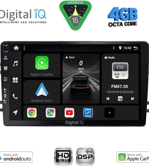 64 BAND EQUALIZER" font_container="tag:h6|text_align:center" custom_heading_font_weight="600"][/vc_column][vc_column width="1/5"][vc_single_image source="external_link" external_img_size="170x170" alignment="center" css_animation="slideInDown" custom_src="https://digitaliq.gr/wp-content/uploads/2024/10/icon_carplay_android-auto_certified_170.png"][vc_custom_heading text="LICENSED WIRELESS APPLE CARPLAY & ANDROID AUTO" font_container="tag:h6|text_align:center" custom_heading_font_weight="600"][/vc_column][vc_column width="1/5"][vc_single_image source="external_link" external_img_size="170x170" alignment="center" css_animation="slideInDown" custom_src="https://digitaliq.gr/wp-content/uploads/2018/10/icon_360-170x170.png"][vc_custom_heading text="FRONT - REAR & 360° CAMERA SUPPORT" font_container="tag:h6|text_align:center" custom_heading_font_weight="600"][/vc_column][/vc_row][vc_row][vc_column align="center" margin_top="10px" margin_bottom="10px"][vc_separator][/vc_column][/vc_row][vc_row][vc_column width="1/2" margin_right="40px" padding_right="40px"][vc_row_inner][vc_column_inner width="1/4" padding_top="20px"][vc_single_image source="external_link" external_img_size="100x61" alignment="center" css_animation="zoomIn" custom_src="https://digitaliq.gr/wp-content/uploads/2021/11/9inch-capacitive-touchscreen.jpg"][/vc_column_inner][vc_column_inner width="3/4"][vc_custom_heading text="TABLET 9 inches" font_container="tag:h5|text_align:left" custom_heading_font_weight="600"][vc_custom_heading text="QLED capacitive touchscreen" font_container="tag:h6|text_align:left" custom_heading_font_weight="500"][vc_column_text]Μεγάλη ευκρινής HD οθόνη αφής, υψηλής ανάλυσης 1280x720 pixels, τεχνολογίας QLED για μεγαλύτερη φωτεινότητα και πιο ζωντανά χρώματα.[/vc_column_text][/vc_column_inner][/vc_row_inner][/vc_column][vc_column width="1/2"][vc_row_inner][vc_column_inner width="1/4" padding_top="20px"][vc_single_image source="external_link" external_img_size="100x61" alignment="center" css_animation="zoomIn" custom_src="https://digitaliq.gr/wp-content/uploads/2021/11/13-band_graphical_eq.jpg"][/vc_column_inner][vc_column_inner width="3/4"][vc_custom_heading text="4x50 WATT" font_container="tag:h5|text_align:left" custom_heading_font_weight="600"][vc_custom_heading text="DSP DTS 4.1 with TIME DELAY – EQUALIZER with 64 BAND" font_container="tag:h6|text_align:left" custom_heading_font_weight="500"][vc_column_text]Δυνατός και καθαρός DSP ήχος με δυνατότητα πολλαπλών ρυθμίσεων μέσω του equalizer 64άρων περιοχών![/vc_column_text][/vc_column_inner][/vc_row_inner][/vc_column][/vc_row][vc_row][vc_column width="1/2" margin_right="40px" padding_right="40px"][vc_row_inner][vc_column_inner width="1/4" padding_top="20px"][vc_single_image source="external_link" external_img_size="115x32" alignment="center" css_animation="zoomIn" custom_src="https://digitaliq.gr/wp-content/uploads/2024/10/Apple_CarPlay_Logo_certified_115.jpg"][/vc_column_inner][vc_column_inner width="3/4"][vc_custom_heading text="WIRELESS APPLE CARPLAY" font_container="tag:h5|text_align:left" custom_heading_font_weight="600"][vc_custom_heading text="Licensed & Certified Apple CarPlay" font_container="tag:h6|text_align:left" custom_heading_font_weight="500"][vc_column_text]Το Apple CarPlay προσφέρει στους χρήστες iPhone® έναν απίστευτα διαισθητικό τρόπο να πραγματοποιούν κλήσεις, να χρησιμοποιούν τους Χάρτες, να ακούν μουσική και να έχουν πρόσβαση σε μηνύματα με μια λέξη ή ένα άγγιγμα.
