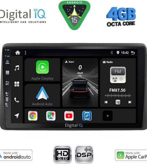 64 BAND EQUALIZER" font_container="tag:h6|text_align:center" custom_heading_font_weight="600"][/vc_column][vc_column width="1/5"][vc_single_image source="external_link" external_img_size="170x170" alignment="center" css_animation="slideInDown" custom_src="https://digitaliq.gr/wp-content/uploads/2024/10/icon_carplay_android-auto_certified_170.png"][vc_custom_heading text="LICENSED WIRELESS APPLE CARPLAY & ANDROID AUTO" font_container="tag:h6|text_align:center" custom_heading_font_weight="600"][/vc_column][vc_column width="1/5"][vc_single_image source="external_link" external_img_size="170x170" alignment="center" css_animation="slideInDown" custom_src="https://digitaliq.gr/wp-content/uploads/2018/10/icon_360-170x170.png"][vc_custom_heading text="FRONT - REAR & 360° CAMERA SUPPORT" font_container="tag:h6|text_align:center" custom_heading_font_weight="600"][/vc_column][/vc_row][vc_row][vc_column align="center" margin_top="10px" margin_bottom="10px"][vc_separator][/vc_column][/vc_row][vc_row][vc_column width="1/2" margin_right="40px" padding_right="40px"][vc_row_inner][vc_column_inner width="1/4" padding_top="20px"][vc_single_image source="external_link" external_img_size="100x61" alignment="center" css_animation="zoomIn" css="" custom_src="https://digitaliq.gr/wp-content/uploads/2018/10/10inch-capacitive-touchscreen_icon.jpg"][/vc_column_inner][vc_column_inner width="3/4"][vc_custom_heading text="TABLET 10.1 inches" font_container="tag:h5|text_align:left" custom_heading_font_weight="600"][vc_custom_heading text="QLED capacitive touchscreen" font_container="tag:h6|text_align:left" spacing_heading="" spacing_heading_tab="" spacing_heading_mobile="" custom_heading_font_weight="500"][vc_column_text spacing_heading="" spacing_heading_tab="" spacing_heading_mobile=""]Μεγάλη ευκρινής HD οθόνη αφής, υψηλής ανάλυσης 1280x720 pixels, τεχνολογίας QLED για μεγαλύτερη φωτεινότητα και πιο ζωντανά χρώματα.[/vc_column_text][/vc_column_inner][/vc_row_inner][/vc_column][vc_column width="1/2"][vc_row_inner][vc_column_inner width="1/4" padding_top="20px"][vc_single_image source="external_link" external_img_size="100x61" alignment="center" css_animation="zoomIn" custom_src="https://digitaliq.gr/wp-content/uploads/2021/11/13-band_graphical_eq.jpg"][/vc_column_inner][vc_column_inner width="3/4"][vc_custom_heading text="4x50 WATT" font_container="tag:h5|text_align:left" custom_heading_font_weight="600"][vc_custom_heading text="DSP DTS 4.1 with TIME DELAY – EQUALIZER with 64 BAND" font_container="tag:h6|text_align:left" custom_heading_font_weight="500"][vc_column_text]Δυνατός και καθαρός DSP ήχος με δυνατότητα πολλαπλών ρυθμίσεων μέσω του equalizer 64άρων περιοχών![/vc_column_text][/vc_column_inner][/vc_row_inner][/vc_column][/vc_row][vc_row][vc_column width="1/2" margin_right="40px" padding_right="40px"][vc_row_inner][vc_column_inner width="1/4" padding_top="20px"][vc_single_image source="external_link" external_img_size="115x32" alignment="center" css_animation="zoomIn" custom_src="https://digitaliq.gr/wp-content/uploads/2024/10/Apple_CarPlay_Logo_certified_115.jpg"][/vc_column_inner][vc_column_inner width="3/4"][vc_custom_heading text="WIRELESS APPLE CARPLAY" font_container="tag:h5|text_align:left" custom_heading_font_weight="600"][vc_custom_heading text="Licensed & Certified Apple CarPlay" font_container="tag:h6|text_align:left" custom_heading_font_weight="500"][vc_column_text]Το Apple CarPlay προσφέρει στους χρήστες iPhone® έναν απίστευτα διαισθητικό τρόπο να πραγματοποιούν κλήσεις, να χρησιμοποιούν τους Χάρτες, να ακούν μουσική και να έχουν πρόσβαση σε μηνύματα με μια λέξη ή ένα άγγιγμα.