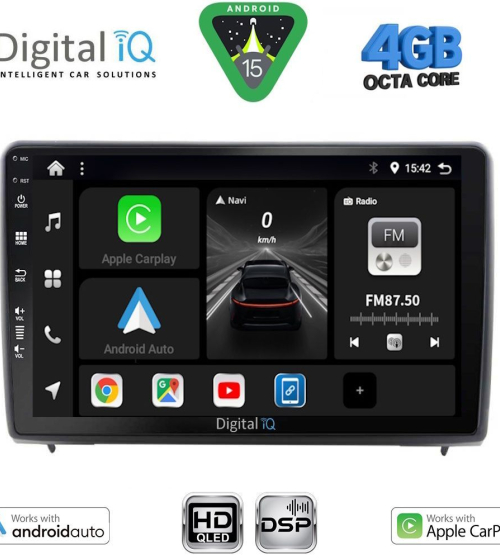 Το Apple CarPlay απαιτεί iPhone 5 ή νεότερο με την πιο πρόσφατη έκδοση του iOS.[/vc_column_text][/vc_column_inner][/vc_row_inner][/vc_column][vc_column width="1/2"][vc_row_inner][vc_column_inner width="1/4" padding_top="20px"][vc_single_image source="external_link" external_img_size="115x32" alignment="center" css_animation="zoomIn" custom_src="https://digitaliq.gr/wp-content/uploads/2024/10/Android_auto-Logo_certified_115.jpg"][/vc_column_inner][vc_column_inner width="3/4"][vc_custom_heading text="WIRELESS ANDROID AUTO" font_container="tag:h5|text_align:left" custom_heading_font_weight="600"][vc_custom_heading text="Licensed & Certified Android Auto" font_container="tag:h6|text_align:left" custom_heading_font_weight="500"][vc_column_text]Επεκτείνει την πλατφόρμα Android στο αυτοκίνητο με τρόπο που έχει σχεδιαστεί ειδικά για την οδήγηση και σας φέρνει αυτόματα χρήσιμες πληροφορίες και τις οργανώνει σε απλές κάρτες που εμφανίζονται ακριβώς όταν τις χρειάζονται. Έχει σχεδιαστεί για να ελαχιστοποιεί την απόσπαση της προσοχής, ώστε να μπορείτε να παραμένετε συγκεντρωμένοι στο δρόμο μπροστά σας.