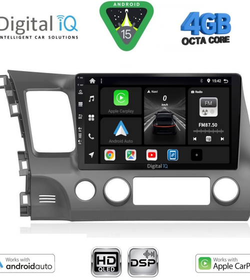 Το Apple CarPlay απαιτεί iPhone 5 ή νεότερο με την πιο πρόσφατη έκδοση του iOS.[/vc_column_text][/vc_column_inner][/vc_row_inner][/vc_column][vc_column width="1/2"][vc_row_inner][vc_column_inner width="1/4" padding_top="20px"][vc_single_image source="external_link" external_img_size="115x32" alignment="center" css_animation="zoomIn" custom_src="https://digitaliq.gr/wp-content/uploads/2024/10/Android_auto-Logo_certified_115.jpg"][/vc_column_inner][vc_column_inner width="3/4"][vc_custom_heading text="WIRELESS ANDROID AUTO" font_container="tag:h5|text_align:left" custom_heading_font_weight="600"][vc_custom_heading text="Licensed & Certified Android Auto" font_container="tag:h6|text_align:left" custom_heading_font_weight="500"][vc_column_text]Επεκτείνει την πλατφόρμα Android στο αυτοκίνητο με τρόπο που έχει σχεδιαστεί ειδικά για την οδήγηση και σας φέρνει αυτόματα χρήσιμες πληροφορίες και τις οργανώνει σε απλές κάρτες που εμφανίζονται ακριβώς όταν τις χρειάζονται. Έχει σχεδιαστεί για να ελαχιστοποιεί την απόσπαση της προσοχής, ώστε να μπορείτε να παραμένετε συγκεντρωμένοι στο δρόμο μπροστά σας.