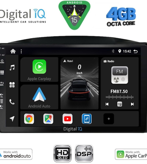 Το Apple CarPlay απαιτεί iPhone 5 ή νεότερο με την πιο πρόσφατη έκδοση του iOS.[/vc_column_text][/vc_column_inner][/vc_row_inner][/vc_column][vc_column width="1/2"][vc_row_inner][vc_column_inner width="1/4" padding_top="20px"][vc_single_image source="external_link" external_img_size="115x32" alignment="center" css_animation="zoomIn" custom_src="https://digitaliq.gr/wp-content/uploads/2024/10/Android_auto-Logo_certified_115.jpg"][/vc_column_inner][vc_column_inner width="3/4"][vc_custom_heading text="WIRELESS ANDROID AUTO" font_container="tag:h5|text_align:left" custom_heading_font_weight="600"][vc_custom_heading text="Licensed & Certified Android Auto" font_container="tag:h6|text_align:left" custom_heading_font_weight="500"][vc_column_text]Επεκτείνει την πλατφόρμα Android στο αυτοκίνητο με τρόπο που έχει σχεδιαστεί ειδικά για την οδήγηση και σας φέρνει αυτόματα χρήσιμες πληροφορίες και τις οργανώνει σε απλές κάρτες που εμφανίζονται ακριβώς όταν τις χρειάζονται. Έχει σχεδιαστεί για να ελαχιστοποιεί την απόσπαση της προσοχής, ώστε να μπορείτε να παραμένετε συγκεντρωμένοι στο δρόμο μπροστά σας.