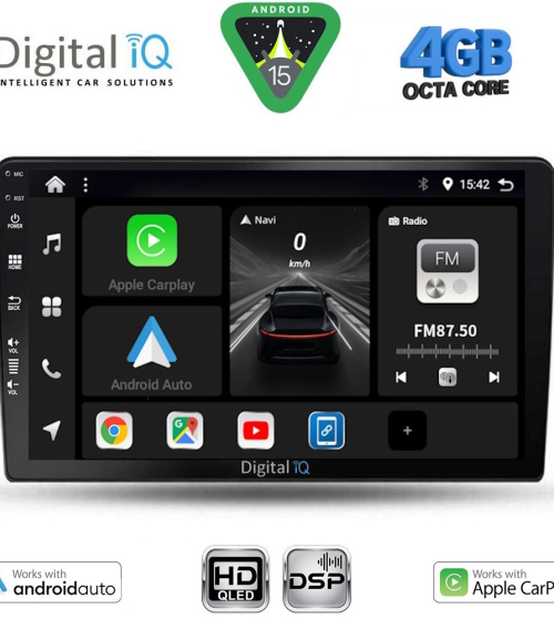 Το Apple CarPlay απαιτεί iPhone 5 ή νεότερο με την πιο πρόσφατη έκδοση του iOS.[/vc_column_text][/vc_column_inner][/vc_row_inner][/vc_column][vc_column width="1/2"][vc_row_inner][vc_column_inner width="1/4" padding_top="20px"][vc_single_image source="external_link" external_img_size="115x32" alignment="center" css_animation="zoomIn" custom_src="https://digitaliq.gr/wp-content/uploads/2024/10/Android_auto-Logo_certified_115.jpg"][/vc_column_inner][vc_column_inner width="3/4"][vc_custom_heading text="WIRELESS ANDROID AUTO" font_container="tag:h5|text_align:left" custom_heading_font_weight="600"][vc_custom_heading text="Licensed & Certified Android Auto" font_container="tag:h6|text_align:left" custom_heading_font_weight="500"][vc_column_text]Επεκτείνει την πλατφόρμα Android στο αυτοκίνητο με τρόπο που έχει σχεδιαστεί ειδικά για την οδήγηση και σας φέρνει αυτόματα χρήσιμες πληροφορίες και τις οργανώνει σε απλές κάρτες που εμφανίζονται ακριβώς όταν τις χρειάζονται. Έχει σχεδιαστεί για να ελαχιστοποιεί την απόσπαση της προσοχής, ώστε να μπορείτε να παραμένετε συγκεντρωμένοι στο δρόμο μπροστά σας.
