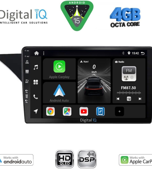 Το Apple CarPlay απαιτεί iPhone 5 ή νεότερο με την πιο πρόσφατη έκδοση του iOS.[/vc_column_text][/vc_column_inner][/vc_row_inner][/vc_column][vc_column width="1/2"][vc_row_inner][vc_column_inner width="1/4" padding_top="20px"][vc_single_image source="external_link" external_img_size="115x32" alignment="center" css_animation="zoomIn" custom_src="https://digitaliq.gr/wp-content/uploads/2024/10/Android_auto-Logo_certified_115.jpg"][/vc_column_inner][vc_column_inner width="3/4"][vc_custom_heading text="WIRELESS ANDROID AUTO" font_container="tag:h5|text_align:left" custom_heading_font_weight="600"][vc_custom_heading text="Licensed & Certified Android Auto" font_container="tag:h6|text_align:left" custom_heading_font_weight="500"][vc_column_text]Επεκτείνει την πλατφόρμα Android στο αυτοκίνητο με τρόπο που έχει σχεδιαστεί ειδικά για την οδήγηση και σας φέρνει αυτόματα χρήσιμες πληροφορίες και τις οργανώνει σε απλές κάρτες που εμφανίζονται ακριβώς όταν τις χρειάζονται. Έχει σχεδιαστεί για να ελαχιστοποιεί την απόσπαση της προσοχής, ώστε να μπορείτε να παραμένετε συγκεντρωμένοι στο δρόμο μπροστά σας.