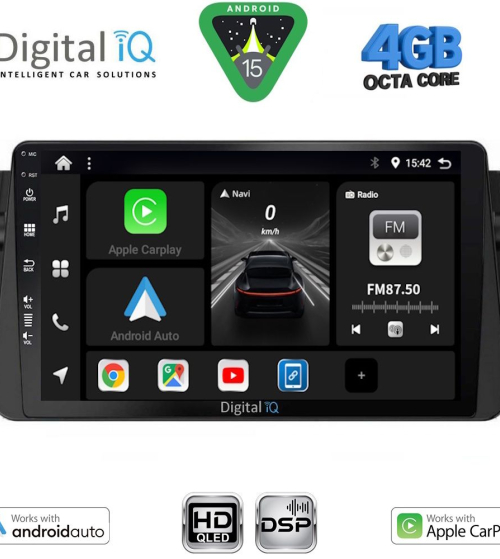 64 BAND EQUALIZER" font_container="tag:h6|text_align:center" custom_heading_font_weight="600"][/vc_column][vc_column width="1/5"][vc_single_image source="external_link" external_img_size="170x170" alignment="center" css_animation="slideInDown" custom_src="https://digitaliq.gr/wp-content/uploads/2024/10/icon_carplay_android-auto_certified_170.png"][vc_custom_heading text="LICENSED WIRELESS APPLE CARPLAY & ANDROID AUTO" font_container="tag:h6|text_align:center" custom_heading_font_weight="600"][/vc_column][vc_column width="1/5"][vc_single_image source="external_link" external_img_size="170x170" alignment="center" css_animation="slideInDown" custom_src="https://digitaliq.gr/wp-content/uploads/2018/10/icon_360-170x170.png"][vc_custom_heading text="FRONT - REAR & 360° CAMERA SUPPORT" font_container="tag:h6|text_align:center" custom_heading_font_weight="600"][/vc_column][/vc_row][vc_row][vc_column align="center" margin_top="10px" margin_bottom="10px"][vc_separator][/vc_column][/vc_row][vc_row][vc_column width="1/2" margin_right="40px" padding_right="40px"][vc_row_inner][vc_column_inner width="1/4" padding_top="20px"][vc_single_image source="external_link" external_img_size="100x61" alignment="center" css_animation="zoomIn" custom_src="https://digitaliq.gr/wp-content/uploads/2021/11/9inch-capacitive-touchscreen.jpg"][/vc_column_inner][vc_column_inner width="3/4"][vc_custom_heading text="TABLET 9 inches" font_container="tag:h5|text_align:left" custom_heading_font_weight="600"][vc_custom_heading text="QLED capacitive touchscreen" font_container="tag:h6|text_align:left" custom_heading_font_weight="500"][vc_column_text]Μεγάλη ευκρινής HD οθόνη αφής, υψηλής ανάλυσης 1280x720 pixels, τεχνολογίας QLED για μεγαλύτερη φωτεινότητα και πιο ζωντανά χρώματα.[/vc_column_text][/vc_column_inner][/vc_row_inner][/vc_column][vc_column width="1/2"][vc_row_inner][vc_column_inner width="1/4" padding_top="20px"][vc_single_image source="external_link" external_img_size="100x61" alignment="center" css_animation="zoomIn" custom_src="https://digitaliq.gr/wp-content/uploads/2021/11/13-band_graphical_eq.jpg"][/vc_column_inner][vc_column_inner width="3/4"][vc_custom_heading text="4x50 WATT" font_container="tag:h5|text_align:left" custom_heading_font_weight="600"][vc_custom_heading text="DSP DTS 4.1 with TIME DELAY – EQUALIZER with 64 BAND" font_container="tag:h6|text_align:left" custom_heading_font_weight="500"][vc_column_text]Δυνατός και καθαρός DSP ήχος με δυνατότητα πολλαπλών ρυθμίσεων μέσω του equalizer 64άρων περιοχών![/vc_column_text][/vc_column_inner][/vc_row_inner][/vc_column][/vc_row][vc_row][vc_column width="1/2" margin_right="40px" padding_right="40px"][vc_row_inner][vc_column_inner width="1/4" padding_top="20px"][vc_single_image source="external_link" external_img_size="115x32" alignment="center" css_animation="zoomIn" custom_src="https://digitaliq.gr/wp-content/uploads/2024/10/Apple_CarPlay_Logo_certified_115.jpg"][/vc_column_inner][vc_column_inner width="3/4"][vc_custom_heading text="WIRELESS APPLE CARPLAY" font_container="tag:h5|text_align:left" custom_heading_font_weight="600"][vc_custom_heading text="Licensed & Certified Apple CarPlay" font_container="tag:h6|text_align:left" custom_heading_font_weight="500"][vc_column_text]Το Apple CarPlay προσφέρει στους χρήστες iPhone® έναν απίστευτα διαισθητικό τρόπο να πραγματοποιούν κλήσεις, να χρησιμοποιούν τους Χάρτες, να ακούν μουσική και να έχουν πρόσβαση σε μηνύματα με μια λέξη ή ένα άγγιγμα.