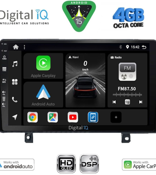 Το Apple CarPlay απαιτεί iPhone 5 ή νεότερο με την πιο πρόσφατη έκδοση του iOS.[/vc_column_text][/vc_column_inner][/vc_row_inner][/vc_column][vc_column width="1/2"][vc_row_inner][vc_column_inner width="1/4" padding_top="20px"][vc_single_image source="external_link" external_img_size="115x32" alignment="center" css_animation="zoomIn" custom_src="https://digitaliq.gr/wp-content/uploads/2024/10/Android_auto-Logo_certified_115.jpg"][/vc_column_inner][vc_column_inner width="3/4"][vc_custom_heading text="WIRELESS ANDROID AUTO" font_container="tag:h5|text_align:left" custom_heading_font_weight="600"][vc_custom_heading text="Licensed & Certified Android Auto" font_container="tag:h6|text_align:left" custom_heading_font_weight="500"][vc_column_text]Επεκτείνει την πλατφόρμα Android στο αυτοκίνητο με τρόπο που έχει σχεδιαστεί ειδικά για την οδήγηση και σας φέρνει αυτόματα χρήσιμες πληροφορίες και τις οργανώνει σε απλές κάρτες που εμφανίζονται ακριβώς όταν τις χρειάζονται. Έχει σχεδιαστεί για να ελαχιστοποιεί την απόσπαση της προσοχής, ώστε να μπορείτε να παραμένετε συγκεντρωμένοι στο δρόμο μπροστά σας.