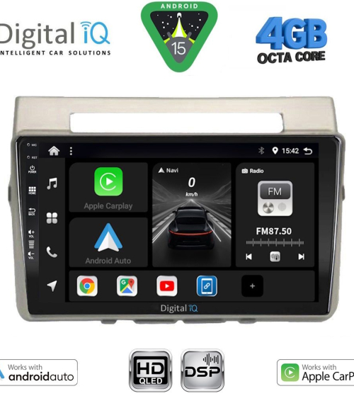 Το Apple CarPlay απαιτεί iPhone 5 ή νεότερο με την πιο πρόσφατη έκδοση του iOS.[/vc_column_text][/vc_column_inner][/vc_row_inner][/vc_column][vc_column width="1/2"][vc_row_inner][vc_column_inner width="1/4" padding_top="20px"][vc_single_image source="external_link" external_img_size="115x32" alignment="center" css_animation="zoomIn" custom_src="https://digitaliq.gr/wp-content/uploads/2024/10/Android_auto-Logo_certified_115.jpg"][/vc_column_inner][vc_column_inner width="3/4"][vc_custom_heading text="WIRELESS ANDROID AUTO" font_container="tag:h5|text_align:left" custom_heading_font_weight="600"][vc_custom_heading text="Licensed & Certified Android Auto" font_container="tag:h6|text_align:left" custom_heading_font_weight="500"][vc_column_text]Επεκτείνει την πλατφόρμα Android στο αυτοκίνητο με τρόπο που έχει σχεδιαστεί ειδικά για την οδήγηση και σας φέρνει αυτόματα χρήσιμες πληροφορίες και τις οργανώνει σε απλές κάρτες που εμφανίζονται ακριβώς όταν τις χρειάζονται. Έχει σχεδιαστεί για να ελαχιστοποιεί την απόσπαση της προσοχής, ώστε να μπορείτε να παραμένετε συγκεντρωμένοι στο δρόμο μπροστά σας.
