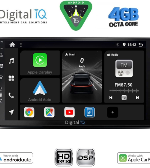 Το Apple CarPlay απαιτεί iPhone 5 ή νεότερο με την πιο πρόσφατη έκδοση του iOS.[/vc_column_text][/vc_column_inner][/vc_row_inner][/vc_column][vc_column width="1/2"][vc_row_inner][vc_column_inner width="1/4" padding_top="20px"][vc_single_image source="external_link" external_img_size="115x32" alignment="center" css_animation="zoomIn" custom_src="https://digitaliq.gr/wp-content/uploads/2024/10/Android_auto-Logo_certified_115.jpg"][/vc_column_inner][vc_column_inner width="3/4"][vc_custom_heading text="WIRELESS ANDROID AUTO" font_container="tag:h5|text_align:left" custom_heading_font_weight="600"][vc_custom_heading text="Licensed & Certified Android Auto" font_container="tag:h6|text_align:left" custom_heading_font_weight="500"][vc_column_text]Επεκτείνει την πλατφόρμα Android στο αυτοκίνητο με τρόπο που έχει σχεδιαστεί ειδικά για την οδήγηση και σας φέρνει αυτόματα χρήσιμες πληροφορίες και τις οργανώνει σε απλές κάρτες που εμφανίζονται ακριβώς όταν τις χρειάζονται. Έχει σχεδιαστεί για να ελαχιστοποιεί την απόσπαση της προσοχής, ώστε να μπορείτε να παραμένετε συγκεντρωμένοι στο δρόμο μπροστά σας.