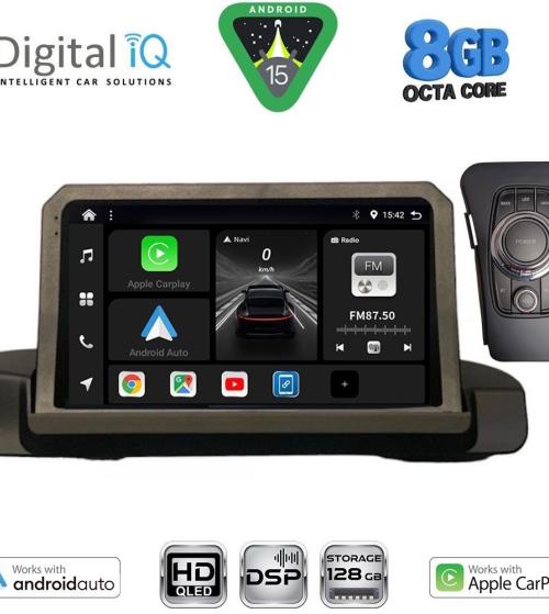 Το Apple CarPlay απαιτεί iPhone 5 ή νεότερο με την πιο πρόσφατη έκδοση του iOS.[/vc_column_text][/vc_column_inner][/vc_row_inner][/vc_column][vc_column width="1/2"][vc_row_inner][vc_column_inner width="1/4" padding_top="20px"][vc_single_image source="external_link" external_img_size="115x32" alignment="center" css_animation="zoomIn" custom_src="https://digitaliq.gr/wp-content/uploads/2024/10/Android_auto-Logo_certified_115.jpg"][/vc_column_inner][vc_column_inner width="3/4"][vc_custom_heading text="WIRELESS ANDROID AUTO" font_container="tag:h5|text_align:left" custom_heading_font_weight="600"][vc_custom_heading text="Licensed & Certified Android Auto" font_container="tag:h6|text_align:left" custom_heading_font_weight="500"][vc_column_text]Επεκτείνει την πλατφόρμα Android στο αυτοκίνητο με τρόπο που έχει σχεδιαστεί ειδικά για την οδήγηση και σας φέρνει αυτόματα χρήσιμες πληροφορίες και τις οργανώνει σε απλές κάρτες που εμφανίζονται ακριβώς όταν τις χρειάζονται. Έχει σχεδιαστεί για να ελαχιστοποιεί την απόσπαση της προσοχής, ώστε να μπορείτε να παραμένετε συγκεντρωμένοι στο δρόμο μπροστά σας.