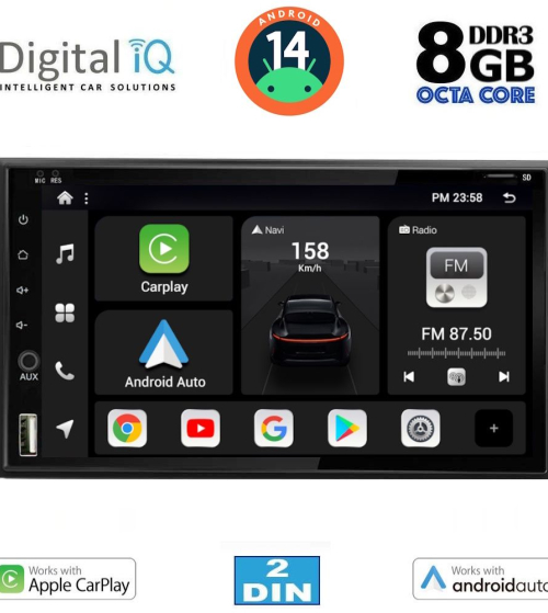 Το Apple CarPlay απαιτεί iPhone 5 ή νεότερο με την πιο πρόσφατη έκδοση του iOS.[/vc_column_text][/vc_column_inner][/vc_row_inner][/vc_column][vc_column width="1/2"][vc_row_inner][vc_column_inner width="1/4" padding_top="20px"][vc_single_image source="external_link" external_img_size="115x32" alignment="center" css_animation="zoomIn" custom_src="https://digitaliq.gr/wp-content/uploads/2024/10/Android_auto-Logo_certified_115.jpg"][/vc_column_inner][vc_column_inner width="3/4"][vc_custom_heading text="WIRELESS ANDROID AUTO" font_container="tag:h5|text_align:left" custom_heading_font_weight="600"][vc_column_text]Επεκτείνει την πλατφόρμα Android στο αυτοκίνητο με τρόπο που έχει σχεδιαστεί ειδικά για την οδήγηση και σας φέρνει αυτόματα χρήσιμες πληροφορίες και τις οργανώνει σε απλές κάρτες που εμφανίζονται ακριβώς όταν τις χρειάζονται. Έχει σχεδιαστεί για να ελαχιστοποιεί την απόσπαση της προσοχής, ώστε να μπορείτε να παραμένετε συγκεντρωμένοι στο δρόμο μπροστά σας.