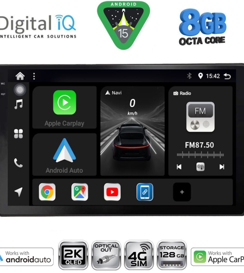Το Apple CarPlay απαιτεί iPhone 5 ή νεότερο με την πιο πρόσφατη έκδοση του iOS.[/vc_column_text][/vc_column_inner][/vc_row_inner][/vc_column][vc_column width="1/2"][vc_row_inner][vc_column_inner width="1/4" padding_top="20px"][vc_single_image source="external_link" external_img_size="115x32" alignment="center" css_animation="zoomIn" custom_src="https://digitaliq.gr/wp-content/uploads/2024/10/Android_auto-Logo_certified_115.jpg"][/vc_column_inner][vc_column_inner width="3/4"][vc_custom_heading text="WIRELESS ANDROID AUTO" font_container="tag:h5|text_align:left" custom_heading_font_weight="600"][vc_custom_heading text="Licensed & Certified Android Auto" font_container="tag:h6|text_align:left" custom_heading_font_weight="500"][vc_column_text]Επεκτείνει την πλατφόρμα Android στο αυτοκίνητο με τρόπο που έχει σχεδιαστεί ειδικά για την οδήγηση και σας φέρνει αυτόματα χρήσιμες πληροφορίες και τις οργανώνει σε απλές κάρτες που εμφανίζονται ακριβώς όταν τις χρειάζονται. Έχει σχεδιαστεί για να ελαχιστοποιεί την απόσπαση της προσοχής, ώστε να μπορείτε να παραμένετε συγκεντρωμένοι στο δρόμο μπροστά σας.