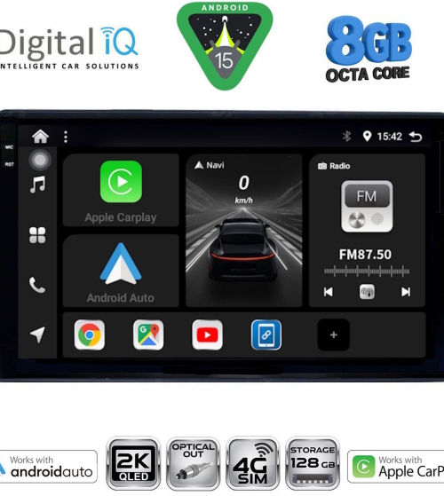 Το Apple CarPlay απαιτεί iPhone 5 ή νεότερο με την πιο πρόσφατη έκδοση του iOS.[/vc_column_text][/vc_column_inner][/vc_row_inner][/vc_column][vc_column width="1/2"][vc_row_inner][vc_column_inner width="1/4" padding_top="20px"][vc_single_image source="external_link" external_img_size="115x32" alignment="center" css_animation="zoomIn" custom_src="https://digitaliq.gr/wp-content/uploads/2024/10/Android_auto-Logo_certified_115.jpg"][/vc_column_inner][vc_column_inner width="3/4"][vc_custom_heading text="WIRELESS ANDROID AUTO" font_container="tag:h5|text_align:left" custom_heading_font_weight="600"][vc_custom_heading text="Licensed & Certified Android Auto" font_container="tag:h6|text_align:left" custom_heading_font_weight="500"][vc_column_text]Επεκτείνει την πλατφόρμα Android στο αυτοκίνητο με τρόπο που έχει σχεδιαστεί ειδικά για την οδήγηση και σας φέρνει αυτόματα χρήσιμες πληροφορίες και τις οργανώνει σε απλές κάρτες που εμφανίζονται ακριβώς όταν τις χρειάζονται. Έχει σχεδιαστεί για να ελαχιστοποιεί την απόσπαση της προσοχής, ώστε να μπορείτε να παραμένετε συγκεντρωμένοι στο δρόμο μπροστά σας.