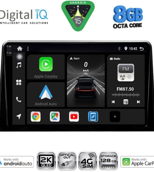 Το Apple CarPlay απαιτεί iPhone 5 ή νεότερο με την πιο πρόσφατη έκδοση του iOS.[/vc_column_text][/vc_column_inner][/vc_row_inner][/vc_column][vc_column width="1/2"][vc_row_inner][vc_column_inner width="1/4" padding_top="20px"][vc_single_image source="external_link" external_img_size="115x32" alignment="center" css_animation="zoomIn" custom_src="https://digitaliq.gr/wp-content/uploads/2024/10/Android_auto-Logo_certified_115.jpg"][/vc_column_inner][vc_column_inner width="3/4"][vc_custom_heading text="WIRELESS ANDROID AUTO" font_container="tag:h5|text_align:left" custom_heading_font_weight="600"][vc_custom_heading text="Licensed & Certified Android Auto" font_container="tag:h6|text_align:left" custom_heading_font_weight="500"][vc_column_text]Επεκτείνει την πλατφόρμα Android στο αυτοκίνητο με τρόπο που έχει σχεδιαστεί ειδικά για την οδήγηση και σας φέρνει αυτόματα χρήσιμες πληροφορίες και τις οργανώνει σε απλές κάρτες που εμφανίζονται ακριβώς όταν τις χρειάζονται. Έχει σχεδιαστεί για να ελαχιστοποιεί την απόσπαση της προσοχής, ώστε να μπορείτε να παραμένετε συγκεντρωμένοι στο δρόμο μπροστά σας.