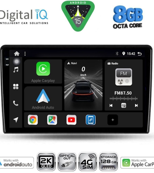 Το Apple CarPlay απαιτεί iPhone 5 ή νεότερο με την πιο πρόσφατη έκδοση του iOS.[/vc_column_text][/vc_column_inner][/vc_row_inner][/vc_column][vc_column width="1/2"][vc_row_inner][vc_column_inner width="1/4" padding_top="20px"][vc_single_image source="external_link" external_img_size="115x32" alignment="center" css_animation="zoomIn" custom_src="https://digitaliq.gr/wp-content/uploads/2024/10/Android_auto-Logo_certified_115.jpg"][/vc_column_inner][vc_column_inner width="3/4"][vc_custom_heading text="WIRELESS ANDROID AUTO" font_container="tag:h5|text_align:left" custom_heading_font_weight="600"][vc_custom_heading text="Licensed & Certified Android Auto" font_container="tag:h6|text_align:left" custom_heading_font_weight="500"][vc_column_text]Επεκτείνει την πλατφόρμα Android στο αυτοκίνητο με τρόπο που έχει σχεδιαστεί ειδικά για την οδήγηση και σας φέρνει αυτόματα χρήσιμες πληροφορίες και τις οργανώνει σε απλές κάρτες που εμφανίζονται ακριβώς όταν τις χρειάζονται. Έχει σχεδιαστεί για να ελαχιστοποιεί την απόσπαση της προσοχής, ώστε να μπορείτε να παραμένετε συγκεντρωμένοι στο δρόμο μπροστά σας.