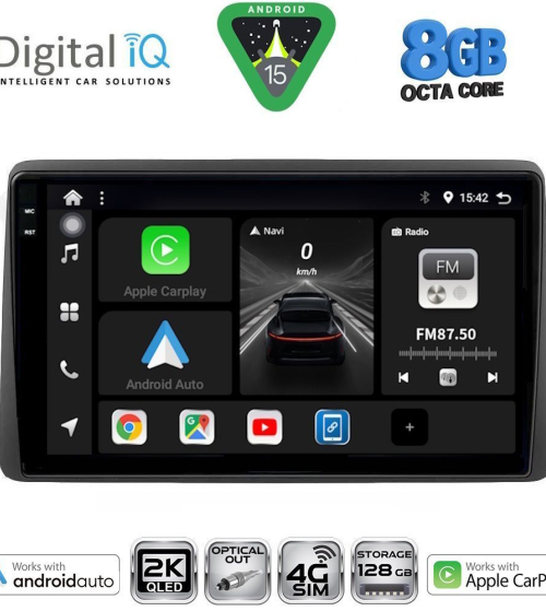 Το Apple CarPlay απαιτεί iPhone 5 ή νεότερο με την πιο πρόσφατη έκδοση του iOS.[/vc_column_text][/vc_column_inner][/vc_row_inner][/vc_column][vc_column width="1/2"][vc_row_inner][vc_column_inner width="1/4" padding_top="20px"][vc_single_image source="external_link" external_img_size="115x32" alignment="center" css_animation="zoomIn" custom_src="https://digitaliq.gr/wp-content/uploads/2024/10/Android_auto-Logo_certified_115.jpg"][/vc_column_inner][vc_column_inner width="3/4"][vc_custom_heading text="WIRELESS ANDROID AUTO" font_container="tag:h5|text_align:left" custom_heading_font_weight="600"][vc_custom_heading text="Licensed & Certified Android Auto" font_container="tag:h6|text_align:left" custom_heading_font_weight="500"][vc_column_text]Επεκτείνει την πλατφόρμα Android στο αυτοκίνητο με τρόπο που έχει σχεδιαστεί ειδικά για την οδήγηση και σας φέρνει αυτόματα χρήσιμες πληροφορίες και τις οργανώνει σε απλές κάρτες που εμφανίζονται ακριβώς όταν τις χρειάζονται. Έχει σχεδιαστεί για να ελαχιστοποιεί την απόσπαση της προσοχής, ώστε να μπορείτε να παραμένετε συγκεντρωμένοι στο δρόμο μπροστά σας.