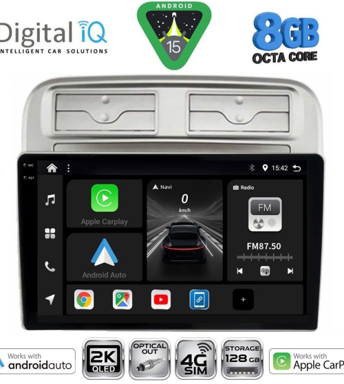 Το Apple CarPlay απαιτεί iPhone 5 ή νεότερο με την πιο πρόσφατη έκδοση του iOS.[/vc_column_text][/vc_column_inner][/vc_row_inner][/vc_column][vc_column width="1/2"][vc_row_inner][vc_column_inner width="1/4" padding_top="20px"][vc_single_image source="external_link" external_img_size="115x32" alignment="center" css_animation="zoomIn" custom_src="https://digitaliq.gr/wp-content/uploads/2024/10/Android_auto-Logo_certified_115.jpg"][/vc_column_inner][vc_column_inner width="3/4"][vc_custom_heading text="WIRELESS ANDROID AUTO" font_container="tag:h5|text_align:left" custom_heading_font_weight="600"][vc_custom_heading text="Licensed & Certified Android Auto" font_container="tag:h6|text_align:left" custom_heading_font_weight="500"][vc_column_text]Επεκτείνει την πλατφόρμα Android στο αυτοκίνητο με τρόπο που έχει σχεδιαστεί ειδικά για την οδήγηση και σας φέρνει αυτόματα χρήσιμες πληροφορίες και τις οργανώνει σε απλές κάρτες που εμφανίζονται ακριβώς όταν τις χρειάζονται. Έχει σχεδιαστεί για να ελαχιστοποιεί την απόσπαση της προσοχής, ώστε να μπορείτε να παραμένετε συγκεντρωμένοι στο δρόμο μπροστά σας.