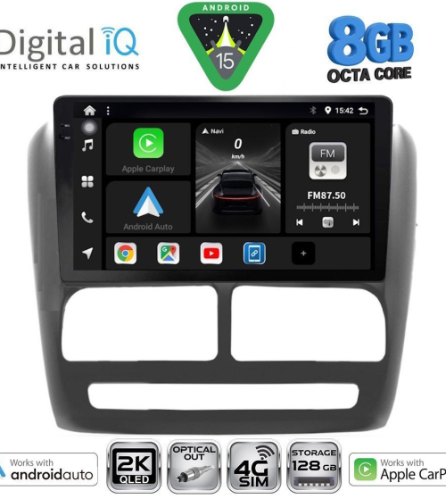 Το Apple CarPlay απαιτεί iPhone 5 ή νεότερο με την πιο πρόσφατη έκδοση του iOS.[/vc_column_text][/vc_column_inner][/vc_row_inner][/vc_column][vc_column width="1/2"][vc_row_inner][vc_column_inner width="1/4" padding_top="20px"][vc_single_image source="external_link" external_img_size="115x32" alignment="center" css_animation="zoomIn" custom_src="https://digitaliq.gr/wp-content/uploads/2024/10/Android_auto-Logo_certified_115.jpg"][/vc_column_inner][vc_column_inner width="3/4"][vc_custom_heading text="WIRELESS ANDROID AUTO" font_container="tag:h5|text_align:left" custom_heading_font_weight="600"][vc_custom_heading text="Licensed & Certified Android Auto" font_container="tag:h6|text_align:left" custom_heading_font_weight="500"][vc_column_text]Επεκτείνει την πλατφόρμα Android στο αυτοκίνητο με τρόπο που έχει σχεδιαστεί ειδικά για την οδήγηση και σας φέρνει αυτόματα χρήσιμες πληροφορίες και τις οργανώνει σε απλές κάρτες που εμφανίζονται ακριβώς όταν τις χρειάζονται. Έχει σχεδιαστεί για να ελαχιστοποιεί την απόσπαση της προσοχής, ώστε να μπορείτε να παραμένετε συγκεντρωμένοι στο δρόμο μπροστά σας.