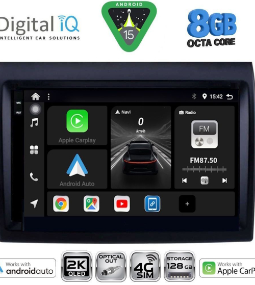 Το Apple CarPlay απαιτεί iPhone 5 ή νεότερο με την πιο πρόσφατη έκδοση του iOS.[/vc_column_text][/vc_column_inner][/vc_row_inner][/vc_column][vc_column width="1/2"][vc_row_inner][vc_column_inner width="1/4" padding_top="20px"][vc_single_image source="external_link" external_img_size="115x32" alignment="center" css_animation="zoomIn" custom_src="https://digitaliq.gr/wp-content/uploads/2024/10/Android_auto-Logo_certified_115.jpg"][/vc_column_inner][vc_column_inner width="3/4"][vc_custom_heading text="WIRELESS ANDROID AUTO" font_container="tag:h5|text_align:left" custom_heading_font_weight="600"][vc_custom_heading text="Licensed & Certified Android Auto" font_container="tag:h6|text_align:left" custom_heading_font_weight="500"][vc_column_text]Επεκτείνει την πλατφόρμα Android στο αυτοκίνητο με τρόπο που έχει σχεδιαστεί ειδικά για την οδήγηση και σας φέρνει αυτόματα χρήσιμες πληροφορίες και τις οργανώνει σε απλές κάρτες που εμφανίζονται ακριβώς όταν τις χρειάζονται. Έχει σχεδιαστεί για να ελαχιστοποιεί την απόσπαση της προσοχής, ώστε να μπορείτε να παραμένετε συγκεντρωμένοι στο δρόμο μπροστά σας.