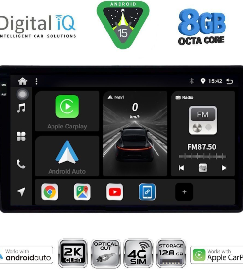 Το Apple CarPlay απαιτεί iPhone 5 ή νεότερο με την πιο πρόσφατη έκδοση του iOS.[/vc_column_text][/vc_column_inner][/vc_row_inner][/vc_column][vc_column width="1/2"][vc_row_inner][vc_column_inner width="1/4" padding_top="20px"][vc_single_image source="external_link" external_img_size="115x32" alignment="center" css_animation="zoomIn" custom_src="https://digitaliq.gr/wp-content/uploads/2024/10/Android_auto-Logo_certified_115.jpg"][/vc_column_inner][vc_column_inner width="3/4"][vc_custom_heading text="WIRELESS ANDROID AUTO" font_container="tag:h5|text_align:left" custom_heading_font_weight="600"][vc_custom_heading text="Licensed & Certified Android Auto" font_container="tag:h6|text_align:left" custom_heading_font_weight="500"][vc_column_text]Επεκτείνει την πλατφόρμα Android στο αυτοκίνητο με τρόπο που έχει σχεδιαστεί ειδικά για την οδήγηση και σας φέρνει αυτόματα χρήσιμες πληροφορίες και τις οργανώνει σε απλές κάρτες που εμφανίζονται ακριβώς όταν τις χρειάζονται. Έχει σχεδιαστεί για να ελαχιστοποιεί την απόσπαση της προσοχής, ώστε να μπορείτε να παραμένετε συγκεντρωμένοι στο δρόμο μπροστά σας.