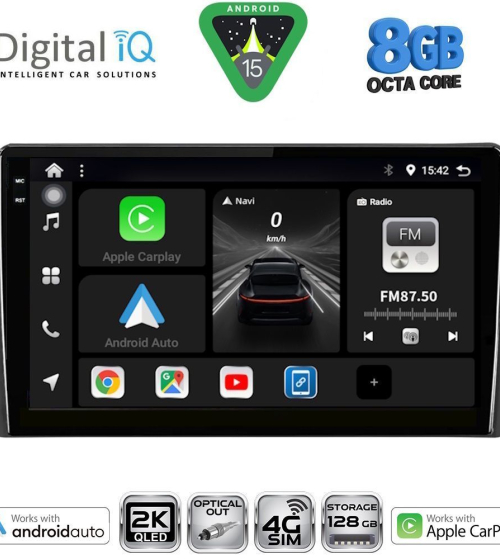 Το Apple CarPlay απαιτεί iPhone 5 ή νεότερο με την πιο πρόσφατη έκδοση του iOS.[/vc_column_text][/vc_column_inner][/vc_row_inner][/vc_column][vc_column width="1/2"][vc_row_inner][vc_column_inner width="1/4" padding_top="20px"][vc_single_image source="external_link" external_img_size="115x32" alignment="center" css_animation="zoomIn" custom_src="https://digitaliq.gr/wp-content/uploads/2024/10/Android_auto-Logo_certified_115.jpg"][/vc_column_inner][vc_column_inner width="3/4"][vc_custom_heading text="WIRELESS ANDROID AUTO" font_container="tag:h5|text_align:left" custom_heading_font_weight="600"][vc_custom_heading text="Licensed & Certified Android Auto" font_container="tag:h6|text_align:left" custom_heading_font_weight="500"][vc_column_text]Επεκτείνει την πλατφόρμα Android στο αυτοκίνητο με τρόπο που έχει σχεδιαστεί ειδικά για την οδήγηση και σας φέρνει αυτόματα χρήσιμες πληροφορίες και τις οργανώνει σε απλές κάρτες που εμφανίζονται ακριβώς όταν τις χρειάζονται. Έχει σχεδιαστεί για να ελαχιστοποιεί την απόσπαση της προσοχής, ώστε να μπορείτε να παραμένετε συγκεντρωμένοι στο δρόμο μπροστά σας.