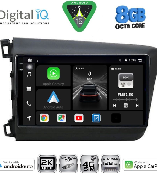 Το Apple CarPlay απαιτεί iPhone 5 ή νεότερο με την πιο πρόσφατη έκδοση του iOS.[/vc_column_text][/vc_column_inner][/vc_row_inner][/vc_column][vc_column width="1/2"][vc_row_inner][vc_column_inner width="1/4" padding_top="20px"][vc_single_image source="external_link" external_img_size="115x32" alignment="center" css_animation="zoomIn" custom_src="https://digitaliq.gr/wp-content/uploads/2024/10/Android_auto-Logo_certified_115.jpg"][/vc_column_inner][vc_column_inner width="3/4"][vc_custom_heading text="WIRELESS ANDROID AUTO" font_container="tag:h5|text_align:left" custom_heading_font_weight="600"][vc_custom_heading text="Licensed & Certified Android Auto" font_container="tag:h6|text_align:left" custom_heading_font_weight="500"][vc_column_text]Επεκτείνει την πλατφόρμα Android στο αυτοκίνητο με τρόπο που έχει σχεδιαστεί ειδικά για την οδήγηση και σας φέρνει αυτόματα χρήσιμες πληροφορίες και τις οργανώνει σε απλές κάρτες που εμφανίζονται ακριβώς όταν τις χρειάζονται. Έχει σχεδιαστεί για να ελαχιστοποιεί την απόσπαση της προσοχής, ώστε να μπορείτε να παραμένετε συγκεντρωμένοι στο δρόμο μπροστά σας.