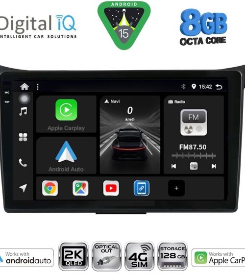 Το Apple CarPlay απαιτεί iPhone 5 ή νεότερο με την πιο πρόσφατη έκδοση του iOS.[/vc_column_text][/vc_column_inner][/vc_row_inner][/vc_column][vc_column width="1/2"][vc_row_inner][vc_column_inner width="1/4" padding_top="20px"][vc_single_image source="external_link" external_img_size="115x32" alignment="center" css_animation="zoomIn" custom_src="https://digitaliq.gr/wp-content/uploads/2024/10/Android_auto-Logo_certified_115.jpg"][/vc_column_inner][vc_column_inner width="3/4"][vc_custom_heading text="WIRELESS ANDROID AUTO" font_container="tag:h5|text_align:left" custom_heading_font_weight="600"][vc_custom_heading text="Licensed & Certified Android Auto" font_container="tag:h6|text_align:left" custom_heading_font_weight="500"][vc_column_text]Επεκτείνει την πλατφόρμα Android στο αυτοκίνητο με τρόπο που έχει σχεδιαστεί ειδικά για την οδήγηση και σας φέρνει αυτόματα χρήσιμες πληροφορίες και τις οργανώνει σε απλές κάρτες που εμφανίζονται ακριβώς όταν τις χρειάζονται. Έχει σχεδιαστεί για να ελαχιστοποιεί την απόσπαση της προσοχής, ώστε να μπορείτε να παραμένετε συγκεντρωμένοι στο δρόμο μπροστά σας.