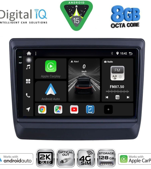 Το Apple CarPlay απαιτεί iPhone 5 ή νεότερο με την πιο πρόσφατη έκδοση του iOS.[/vc_column_text][/vc_column_inner][/vc_row_inner][/vc_column][vc_column width="1/2"][vc_row_inner][vc_column_inner width="1/4" padding_top="20px"][vc_single_image source="external_link" external_img_size="115x32" alignment="center" css_animation="zoomIn" custom_src="https://digitaliq.gr/wp-content/uploads/2024/10/Android_auto-Logo_certified_115.jpg"][/vc_column_inner][vc_column_inner width="3/4"][vc_custom_heading text="WIRELESS ANDROID AUTO" font_container="tag:h5|text_align:left" custom_heading_font_weight="600"][vc_custom_heading text="Licensed & Certified Android Auto" font_container="tag:h6|text_align:left" custom_heading_font_weight="500"][vc_column_text]Επεκτείνει την πλατφόρμα Android στο αυτοκίνητο με τρόπο που έχει σχεδιαστεί ειδικά για την οδήγηση και σας φέρνει αυτόματα χρήσιμες πληροφορίες και τις οργανώνει σε απλές κάρτες που εμφανίζονται ακριβώς όταν τις χρειάζονται. Έχει σχεδιαστεί για να ελαχιστοποιεί την απόσπαση της προσοχής, ώστε να μπορείτε να παραμένετε συγκεντρωμένοι στο δρόμο μπροστά σας.