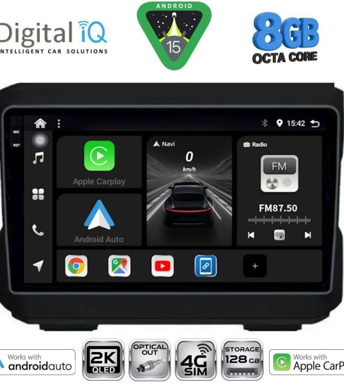 Το Apple CarPlay απαιτεί iPhone 5 ή νεότερο με την πιο πρόσφατη έκδοση του iOS.[/vc_column_text][/vc_column_inner][/vc_row_inner][/vc_column][vc_column width="1/2"][vc_row_inner][vc_column_inner width="1/4" padding_top="20px"][vc_single_image source="external_link" external_img_size="115x32" alignment="center" css_animation="zoomIn" custom_src="https://digitaliq.gr/wp-content/uploads/2024/10/Android_auto-Logo_certified_115.jpg"][/vc_column_inner][vc_column_inner width="3/4"][vc_custom_heading text="WIRELESS ANDROID AUTO" font_container="tag:h5|text_align:left" custom_heading_font_weight="600"][vc_custom_heading text="Licensed & Certified Android Auto" font_container="tag:h6|text_align:left" custom_heading_font_weight="500"][vc_column_text]Επεκτείνει την πλατφόρμα Android στο αυτοκίνητο με τρόπο που έχει σχεδιαστεί ειδικά για την οδήγηση και σας φέρνει αυτόματα χρήσιμες πληροφορίες και τις οργανώνει σε απλές κάρτες που εμφανίζονται ακριβώς όταν τις χρειάζονται. Έχει σχεδιαστεί για να ελαχιστοποιεί την απόσπαση της προσοχής, ώστε να μπορείτε να παραμένετε συγκεντρωμένοι στο δρόμο μπροστά σας.