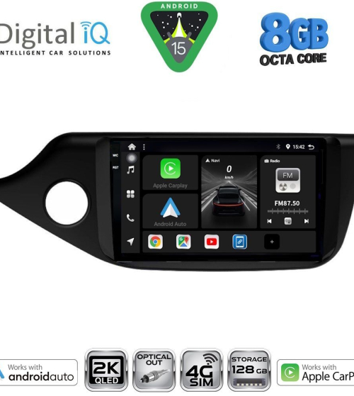 Το Apple CarPlay απαιτεί iPhone 5 ή νεότερο με την πιο πρόσφατη έκδοση του iOS.[/vc_column_text][/vc_column_inner][/vc_row_inner][/vc_column][vc_column width="1/2"][vc_row_inner][vc_column_inner width="1/4" padding_top="20px"][vc_single_image source="external_link" external_img_size="115x32" alignment="center" css_animation="zoomIn" custom_src="https://digitaliq.gr/wp-content/uploads/2024/10/Android_auto-Logo_certified_115.jpg"][/vc_column_inner][vc_column_inner width="3/4"][vc_custom_heading text="WIRELESS ANDROID AUTO" font_container="tag:h5|text_align:left" custom_heading_font_weight="600"][vc_custom_heading text="Licensed & Certified Android Auto" font_container="tag:h6|text_align:left" custom_heading_font_weight="500"][vc_column_text]Επεκτείνει την πλατφόρμα Android στο αυτοκίνητο με τρόπο που έχει σχεδιαστεί ειδικά για την οδήγηση και σας φέρνει αυτόματα χρήσιμες πληροφορίες και τις οργανώνει σε απλές κάρτες που εμφανίζονται ακριβώς όταν τις χρειάζονται. Έχει σχεδιαστεί για να ελαχιστοποιεί την απόσπαση της προσοχής, ώστε να μπορείτε να παραμένετε συγκεντρωμένοι στο δρόμο μπροστά σας.